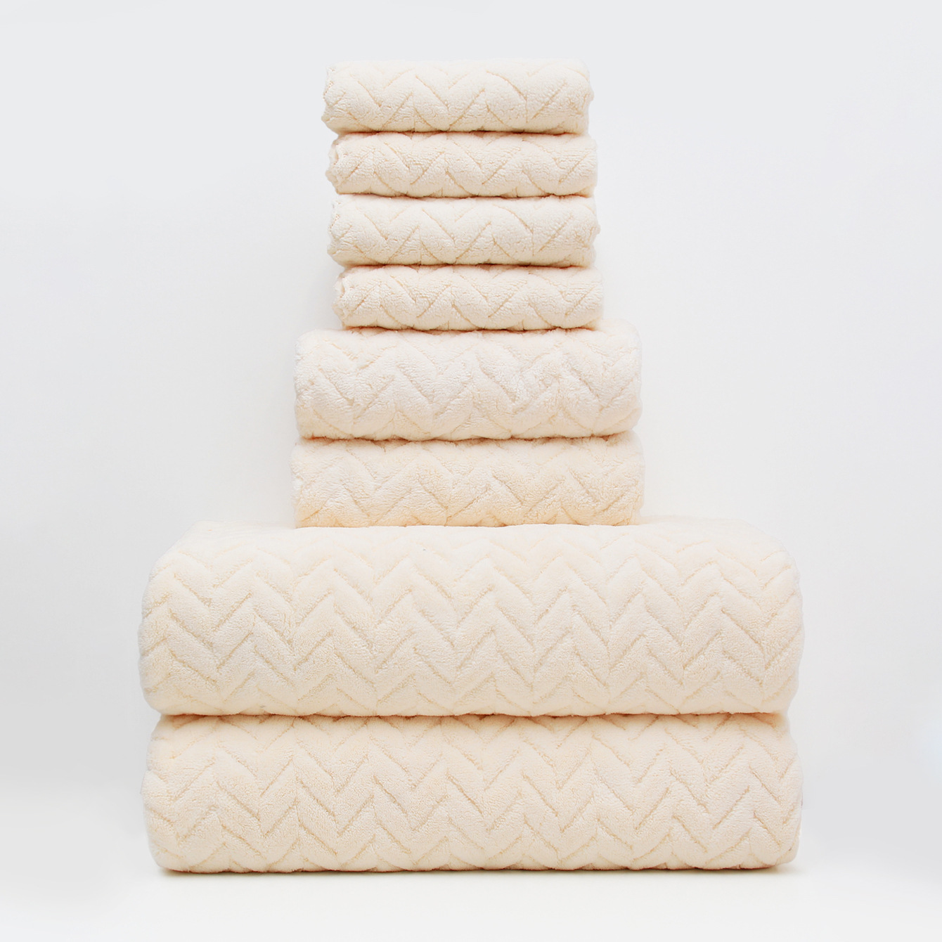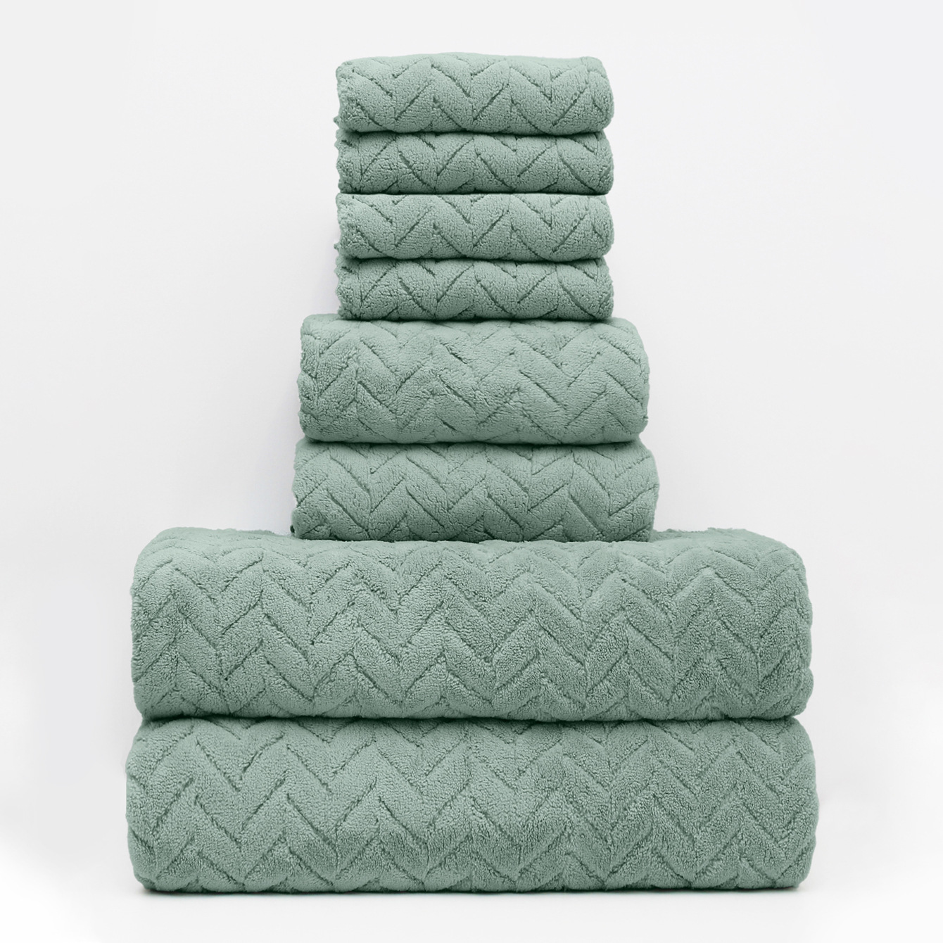 • 8 피스 세트: 4 스퀘어 타월 2 수건 2 목욕 타월