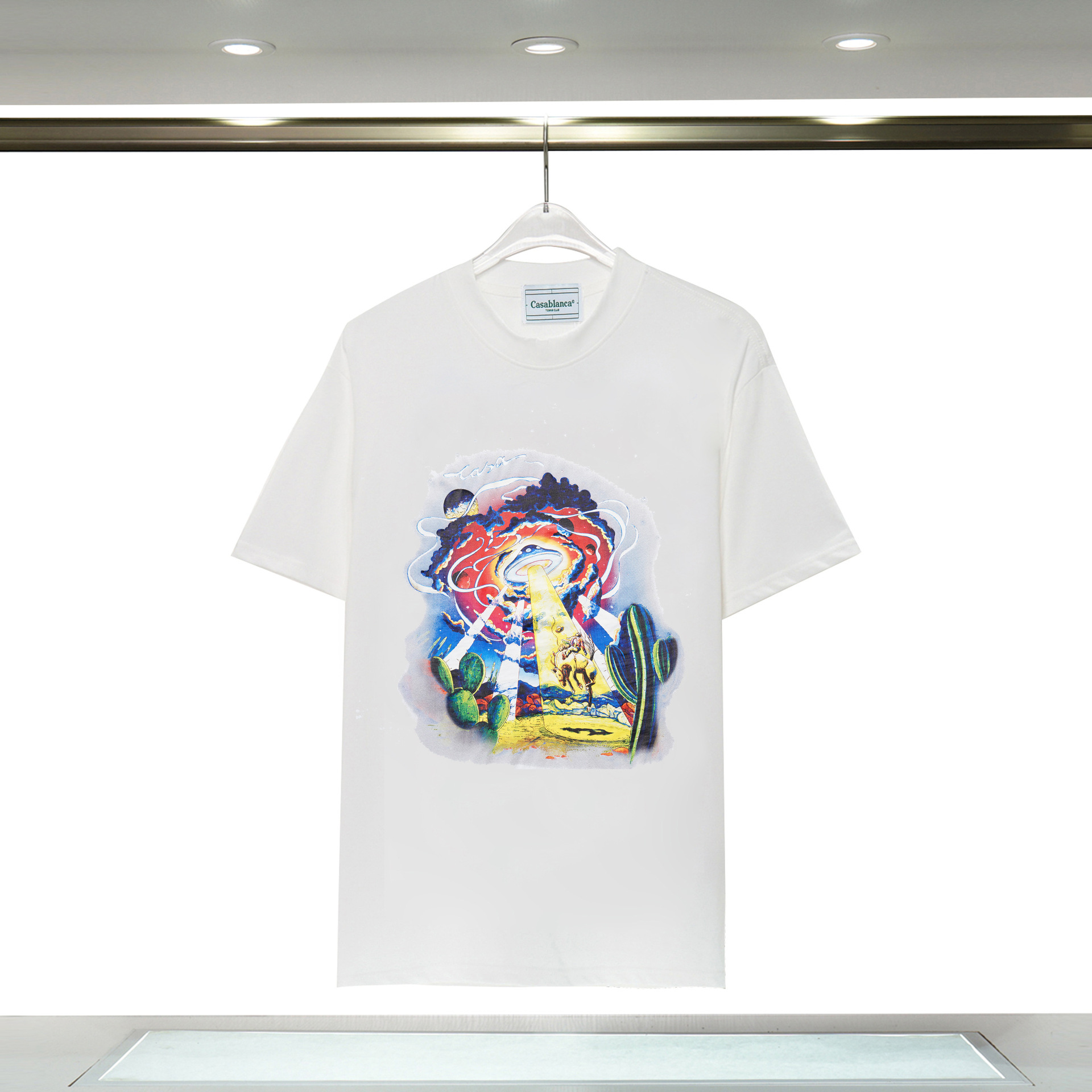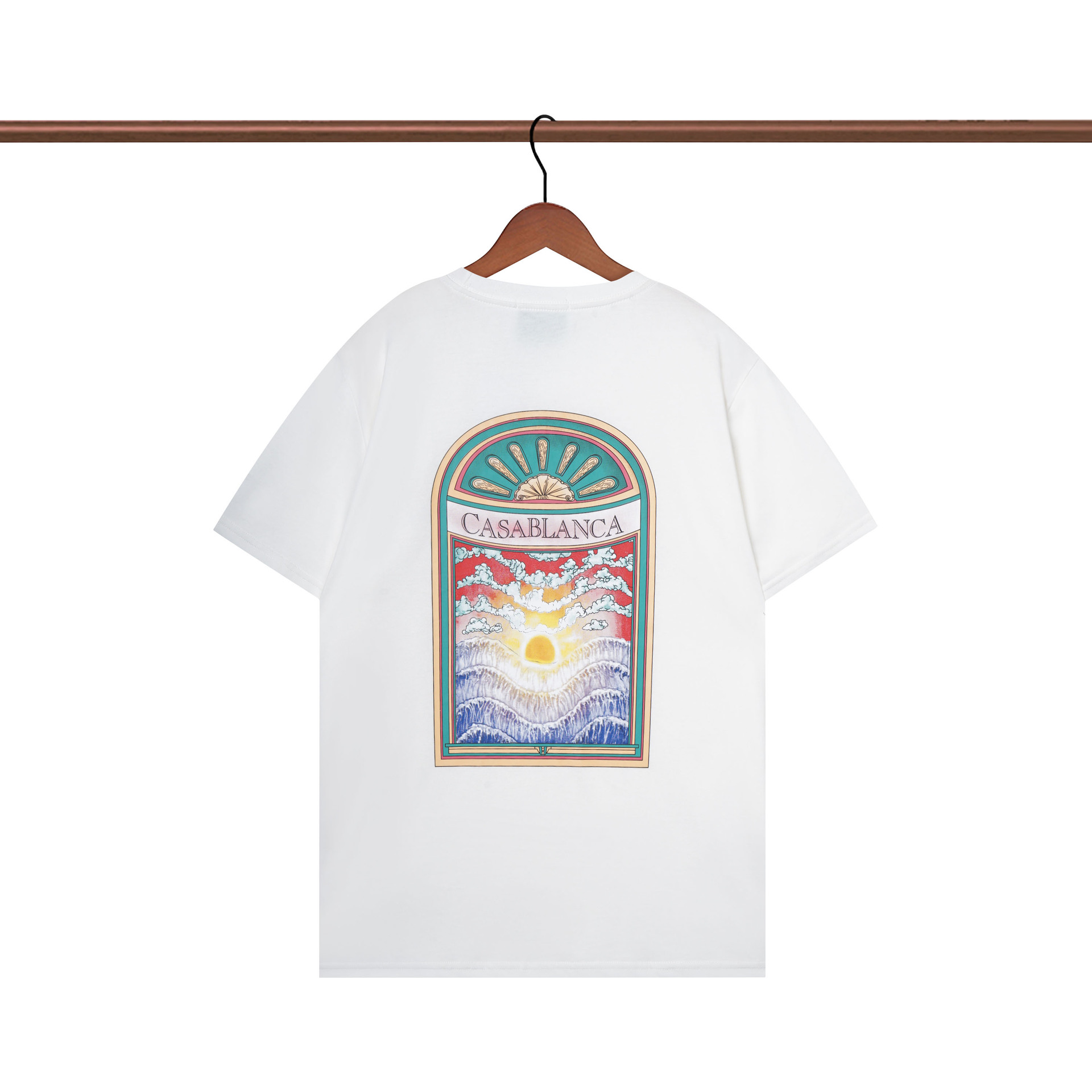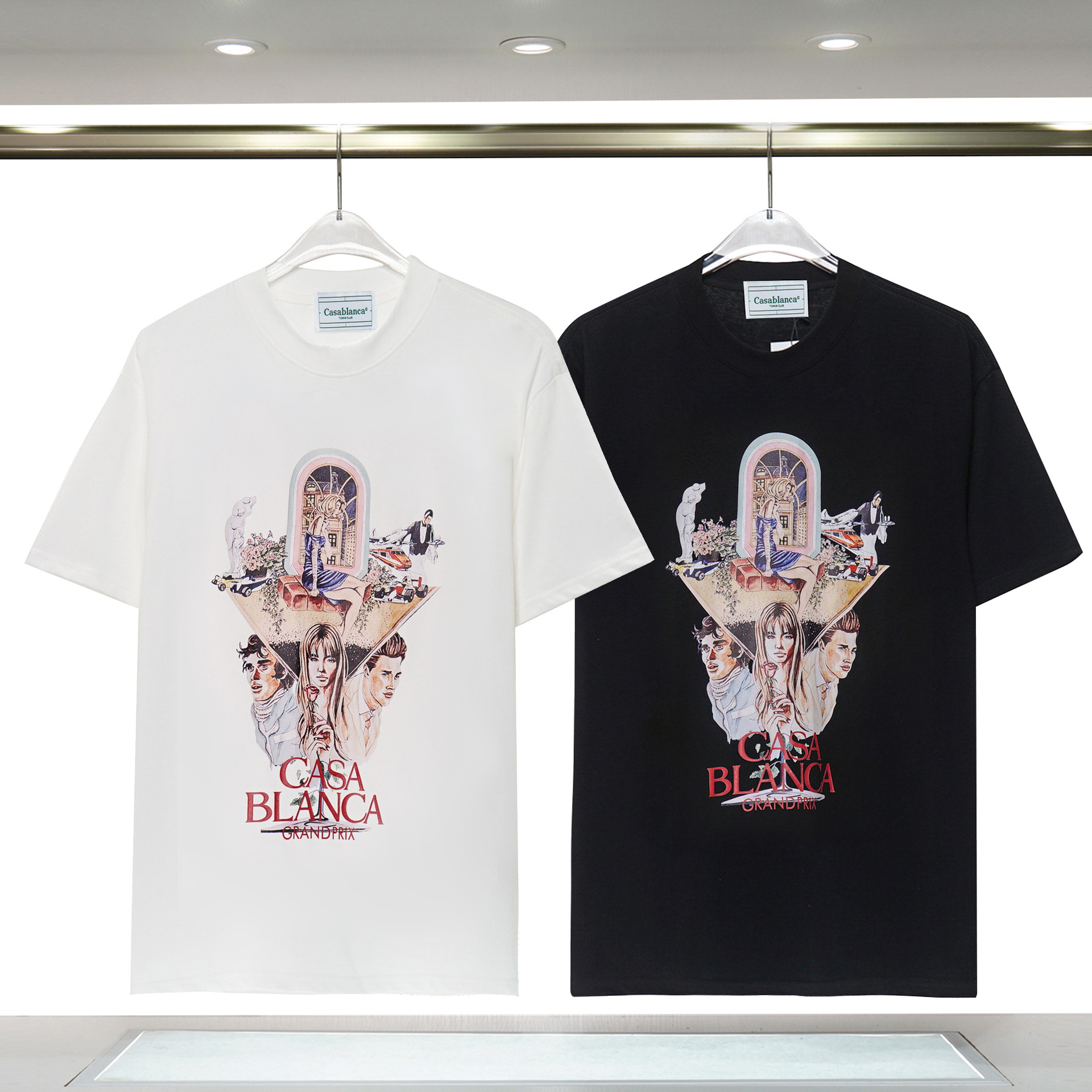 장기 주식 국경 간 패션 브랜드 카사 블랑카 판타지 게이트 카사 프린트 반팔 남성 티셔츠