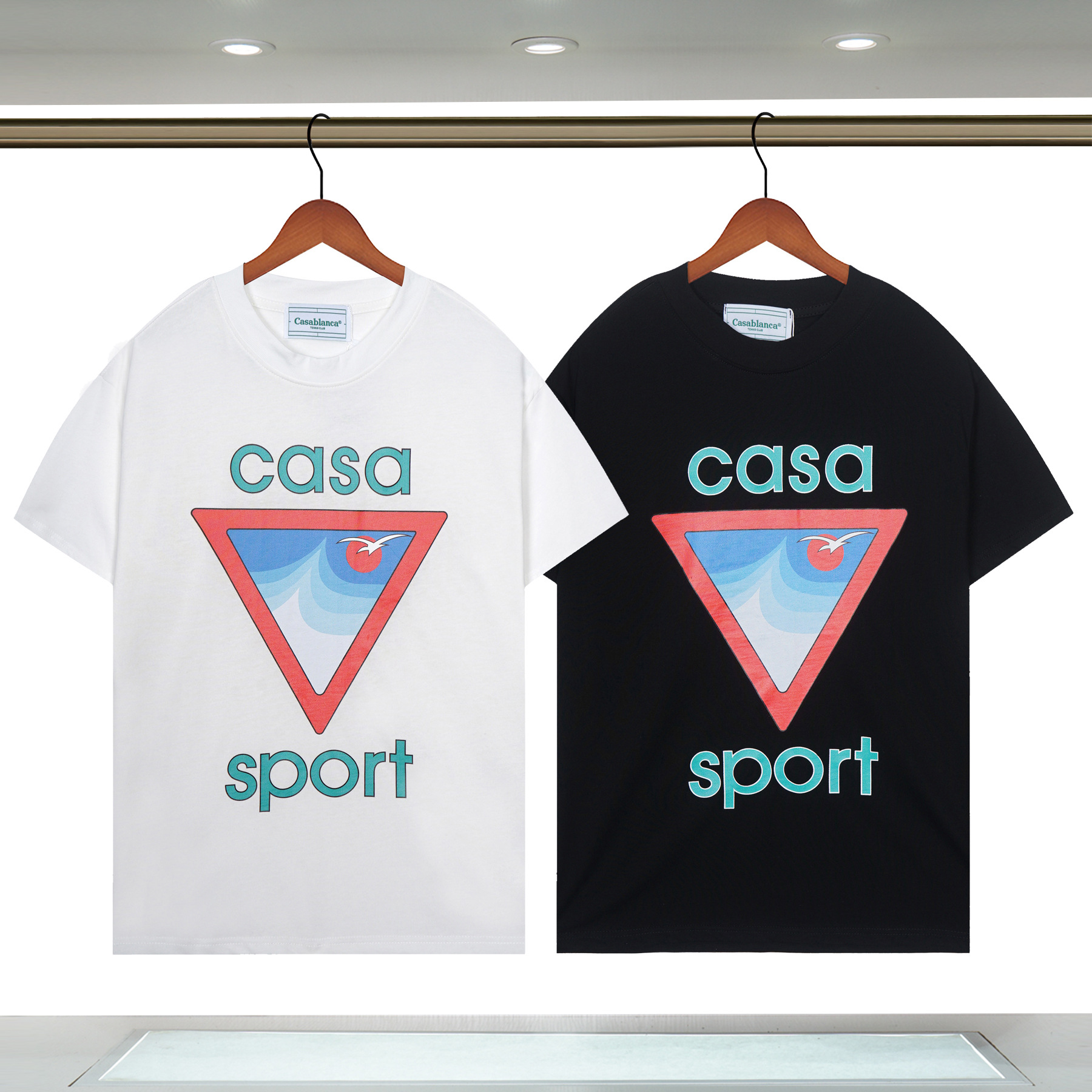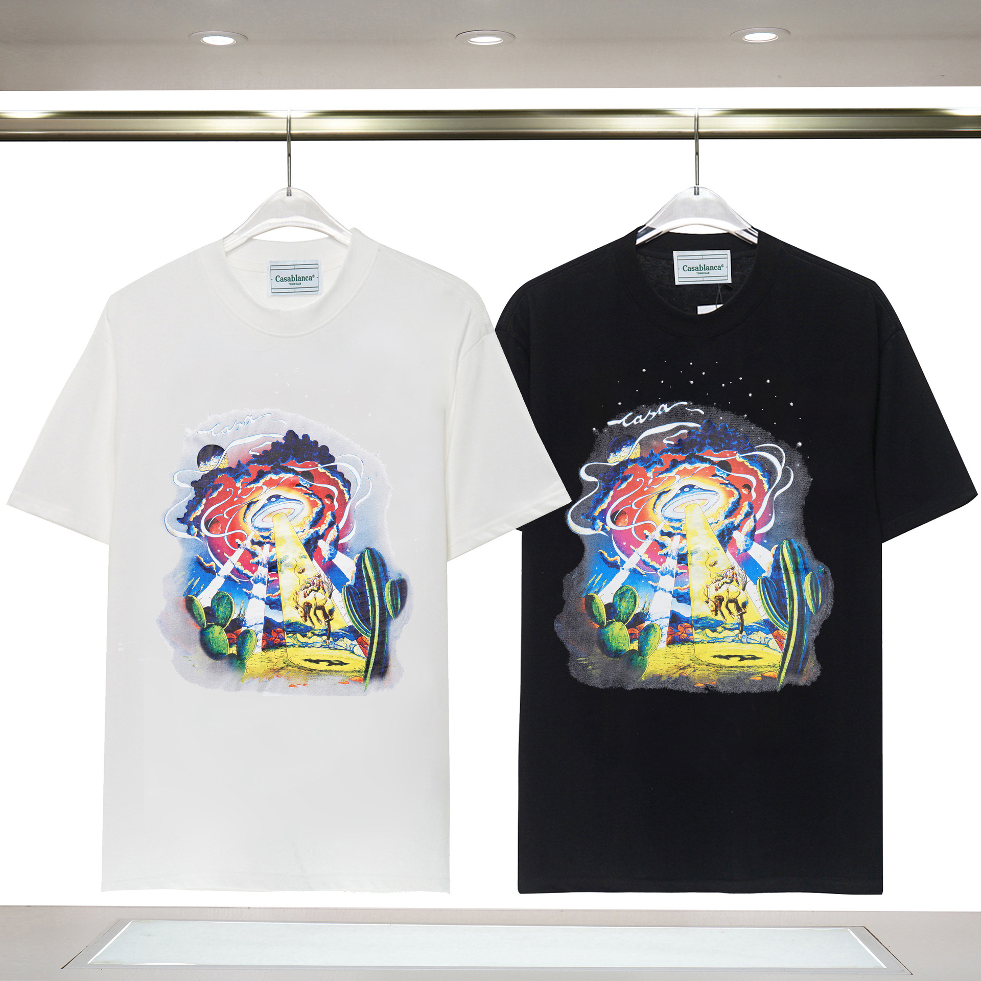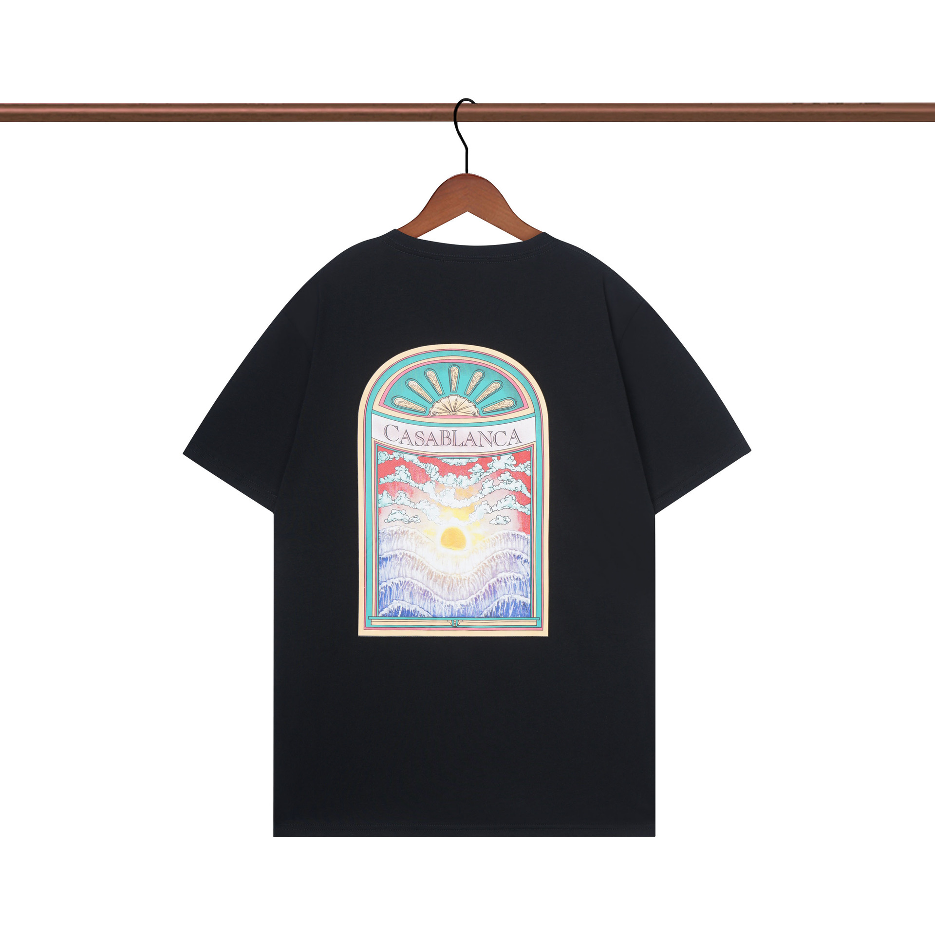 장기 주식 국경 간 패션 브랜드 카사 블랑카 판타지 게이트 카사 프린트 반팔 남성 티셔츠