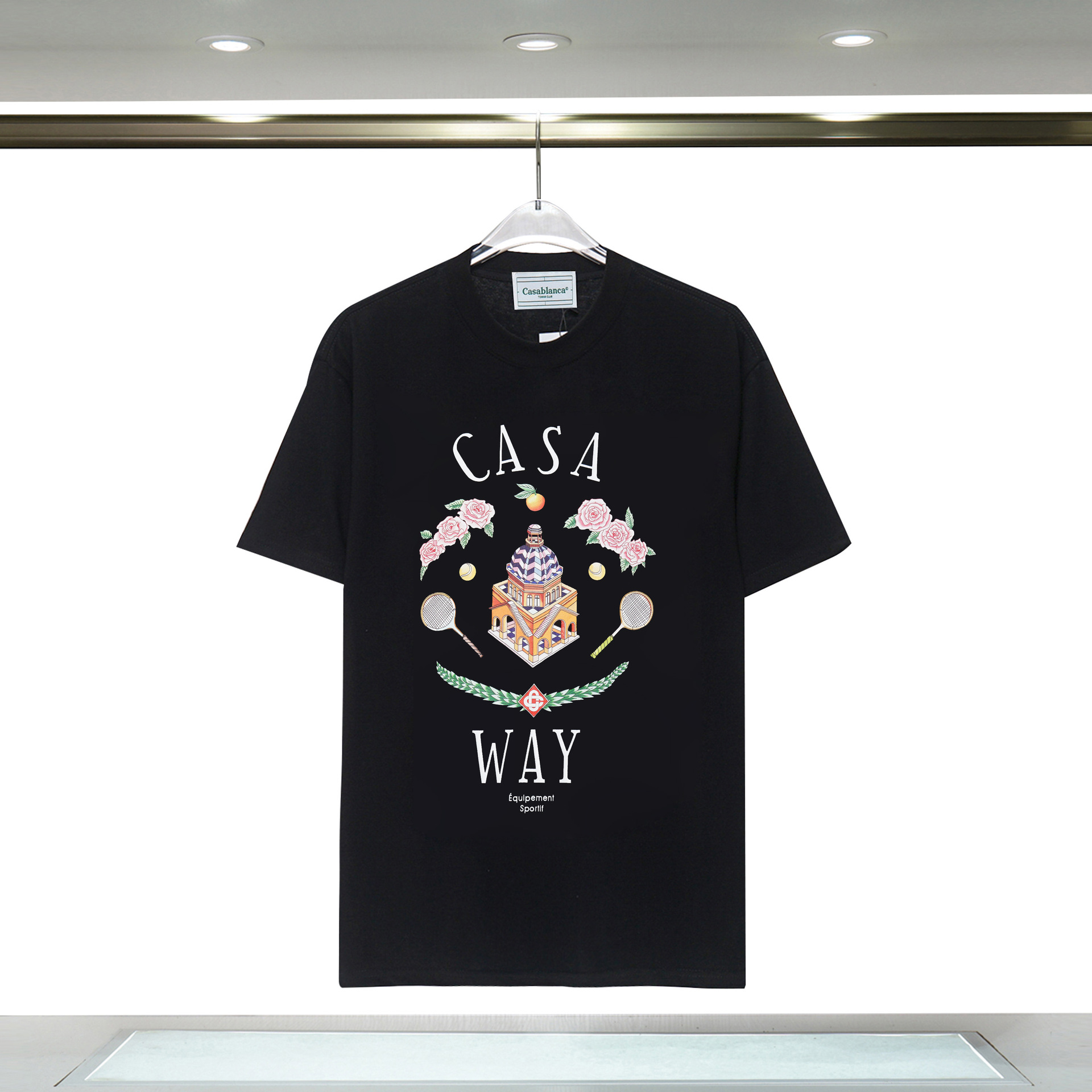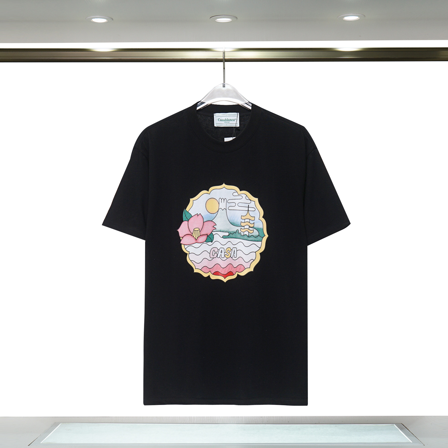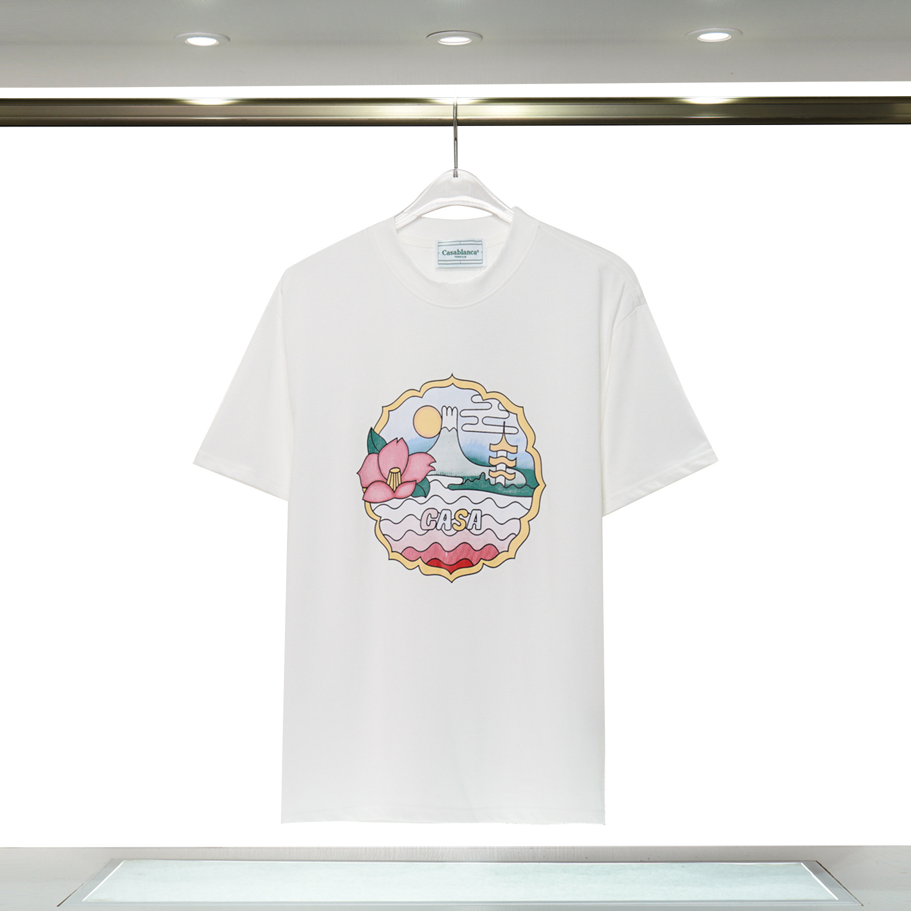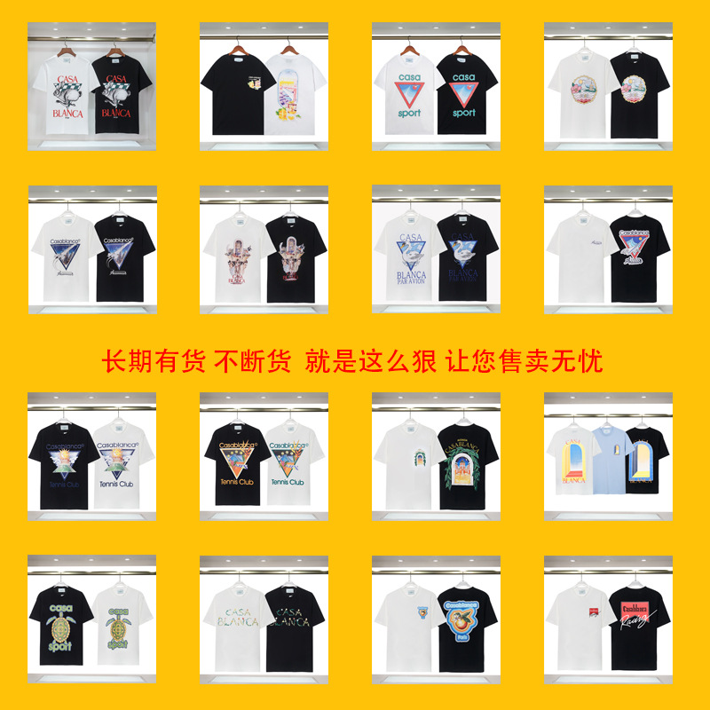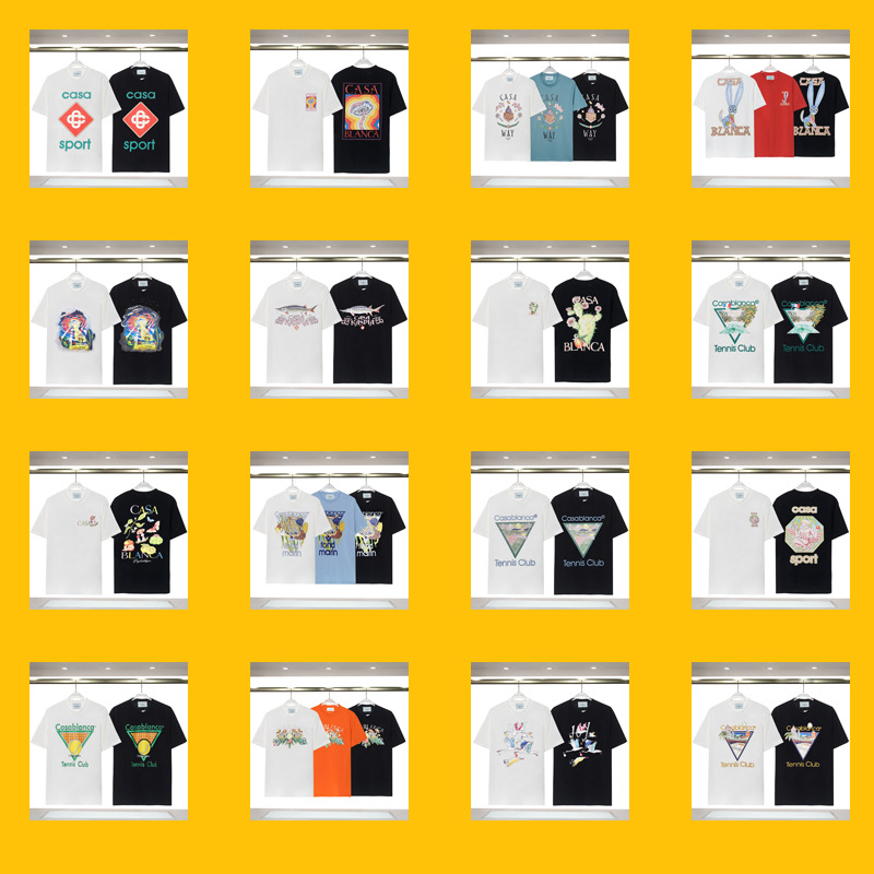 장기 주식 국경 간 패션 브랜드 카사 블랑카 판타지 게이트 카사 프린트 반팔 남성 티셔츠스토어 가기