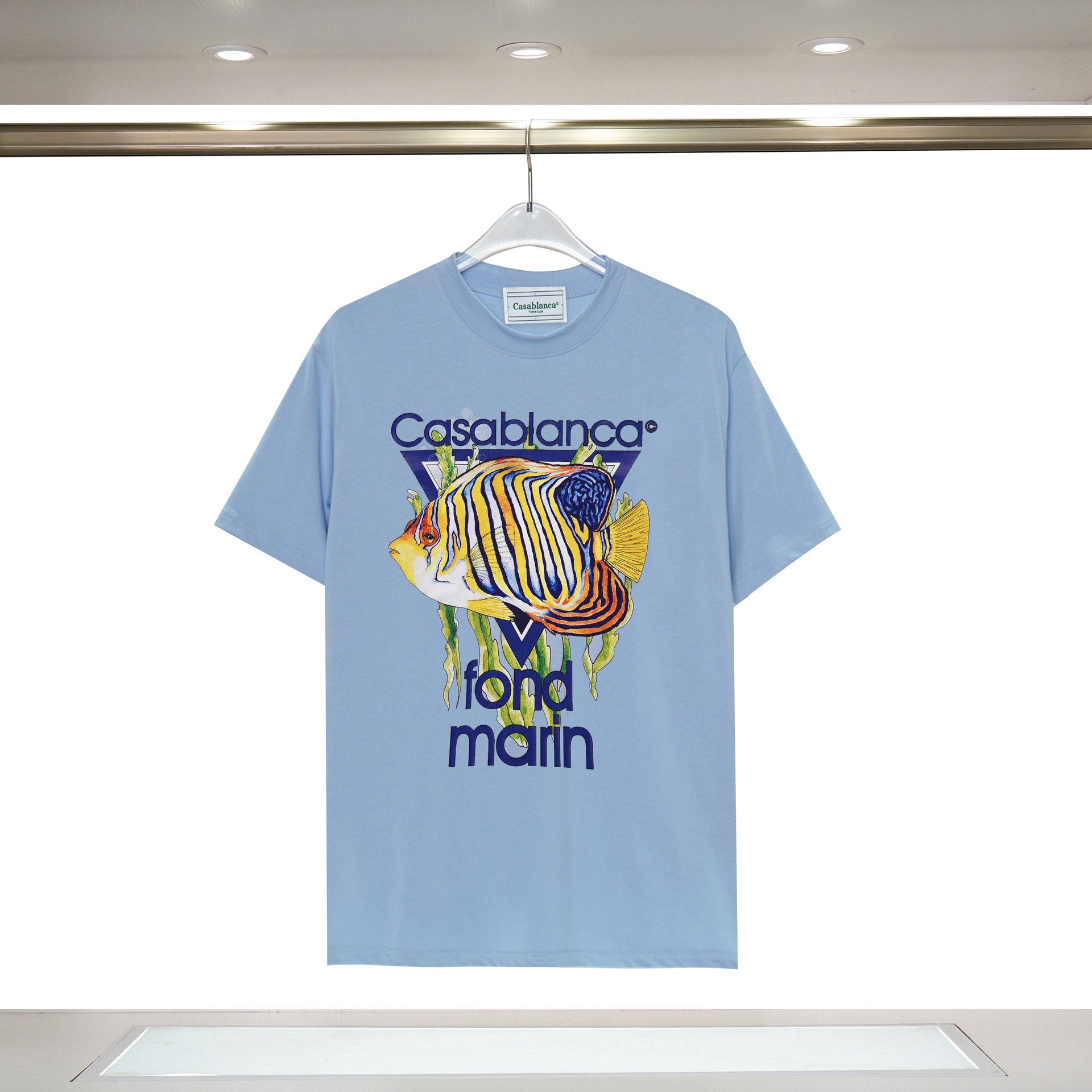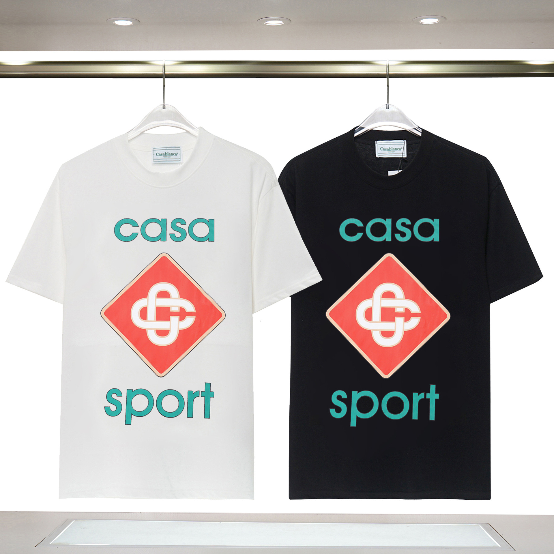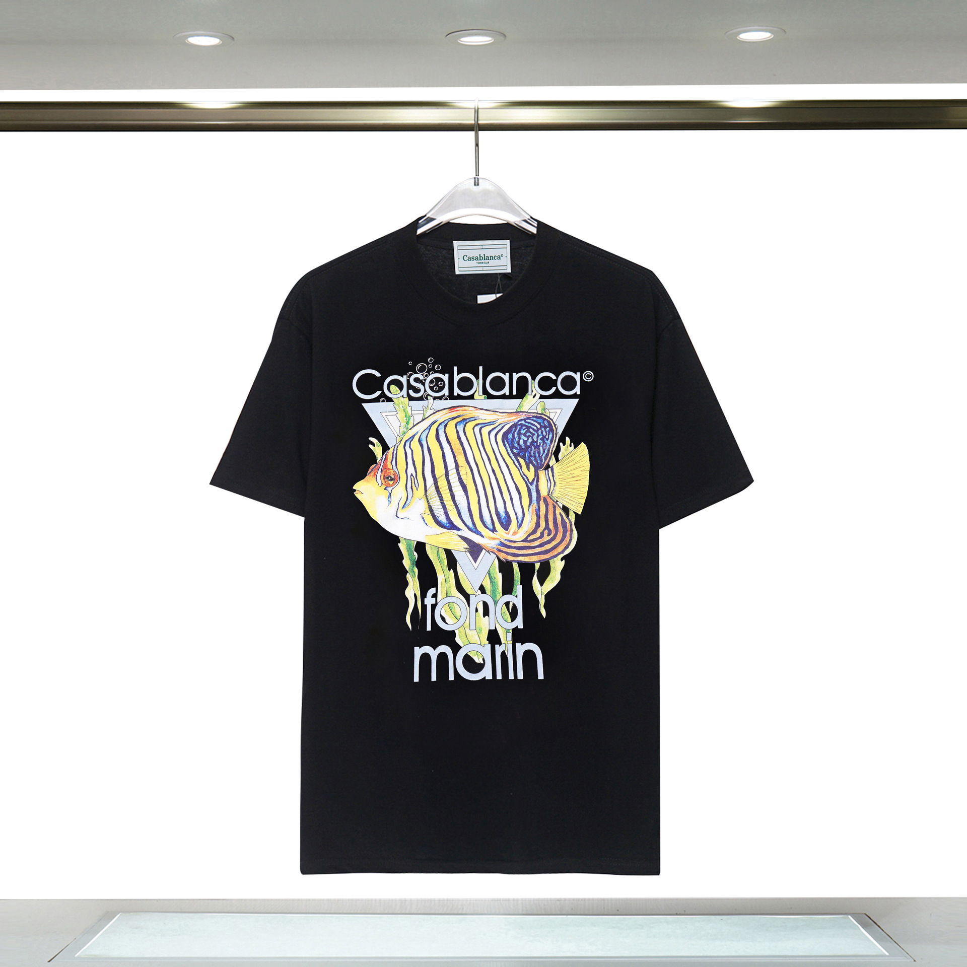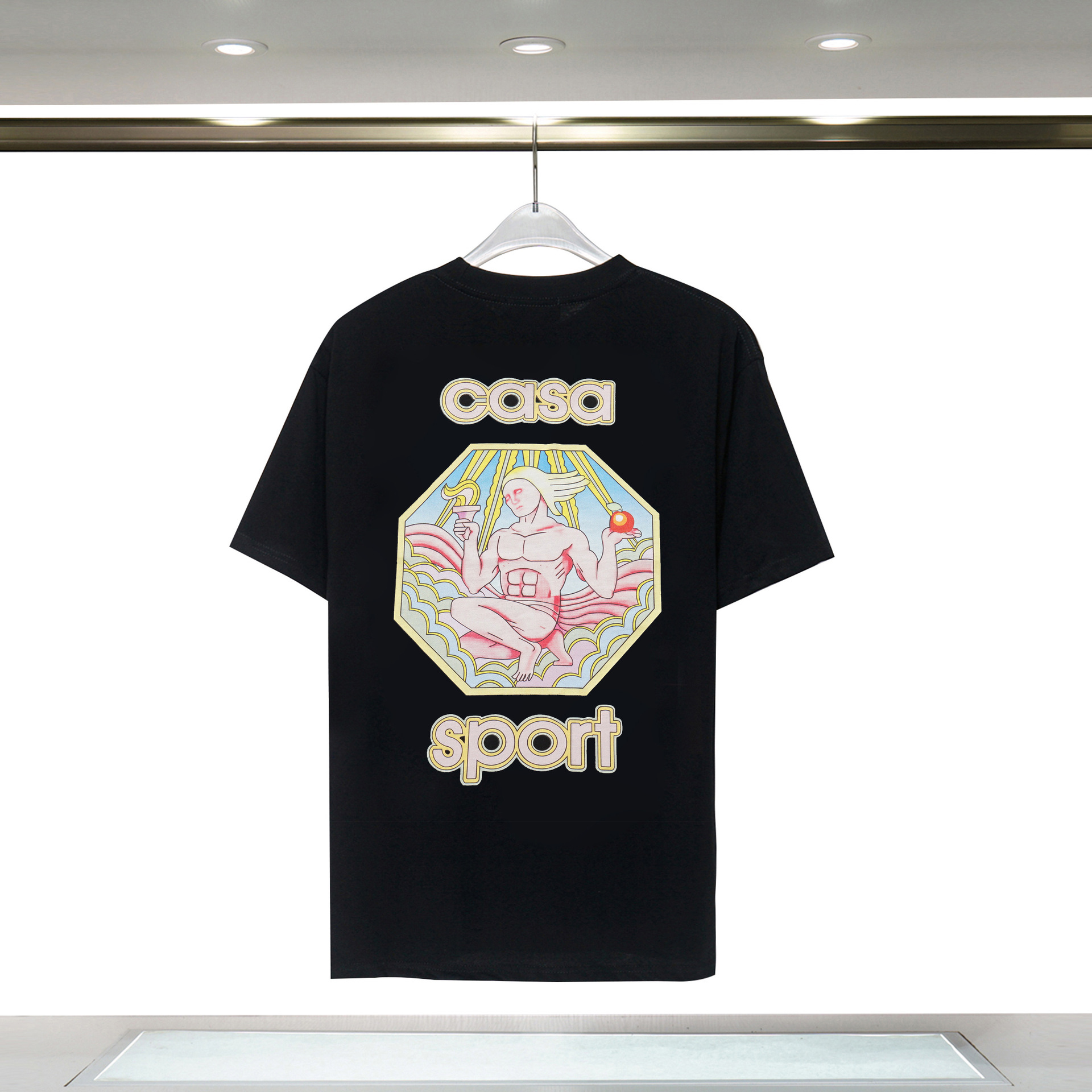 장기 주식 국경 간 패션 브랜드 카사 블랑카 판타지 게이트 카사 프린트 반팔 남성 티셔츠스토어 가기