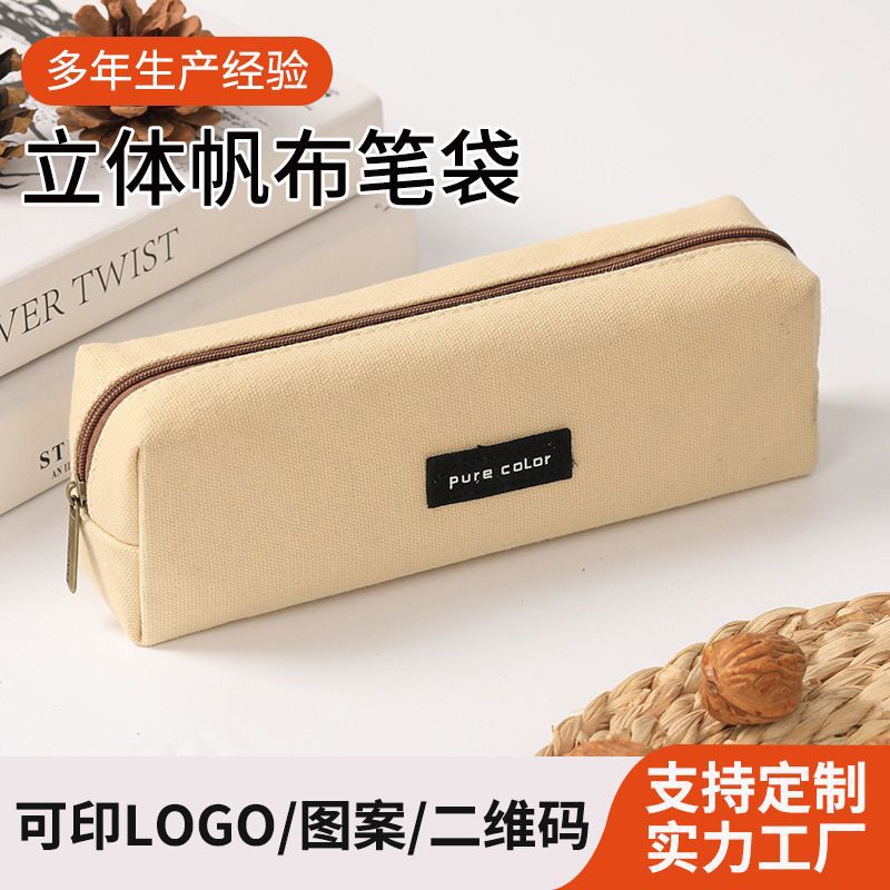 간단한 캔버스 지퍼 필통, 입체 대용량 초중등학생 문구 가방, 맞춤형 문구 가방, 단색 필통