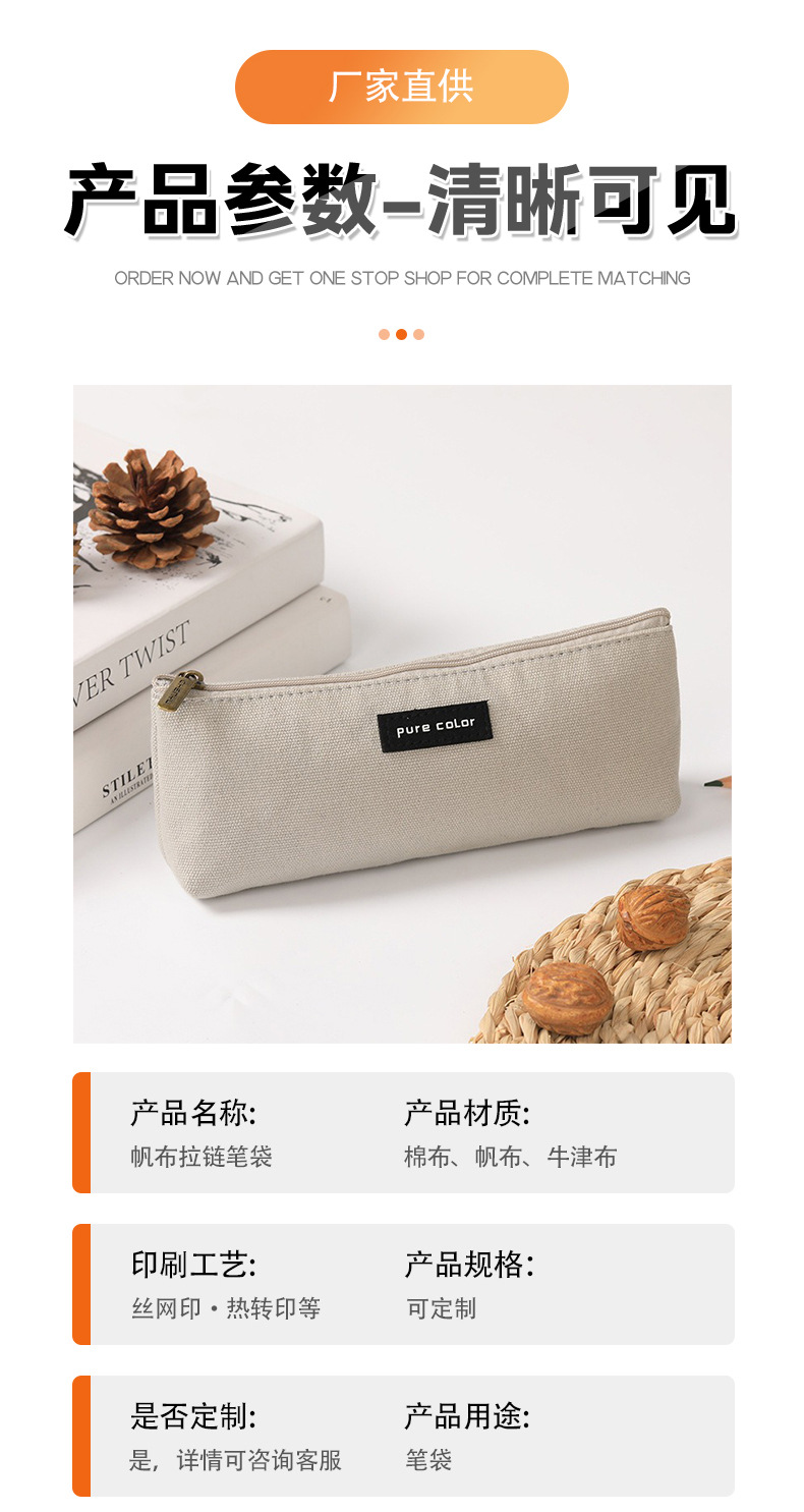 간단한 캔버스 지퍼 필통, 입체 대용량 초중등학생 문구 가방, 맞춤형 문구 가방, 단색 필통스토어 가기