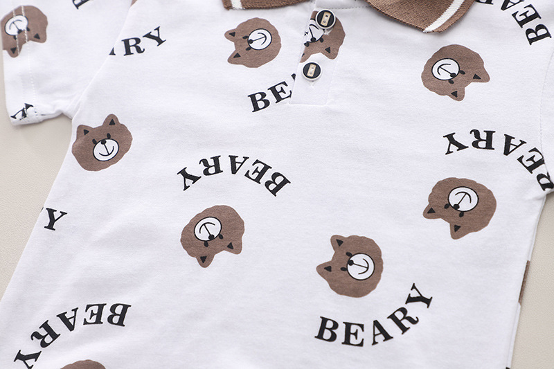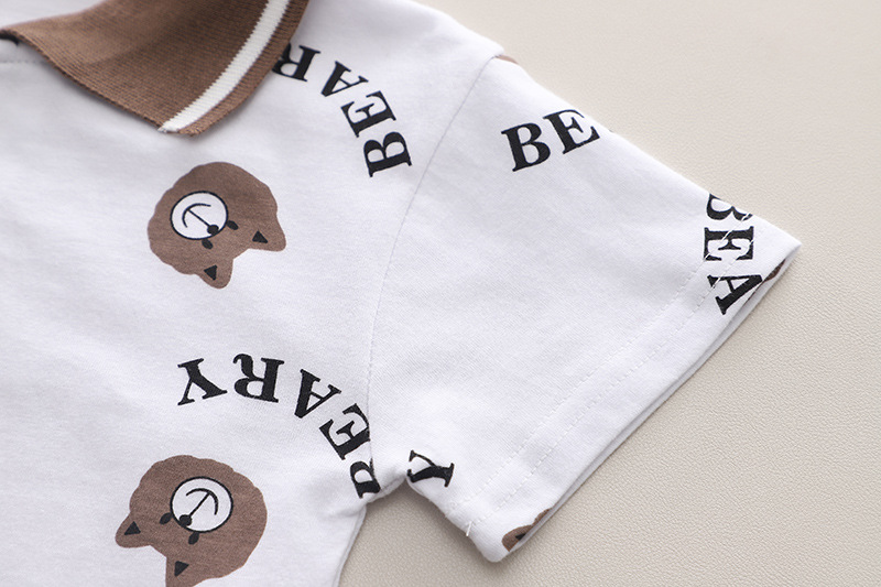 여름 소년 반팔 세트 새로운 어린이 패션 프라이드 스트리트 보이즈 여름 전체 인쇄 곰 머리 편지 반팔 세트