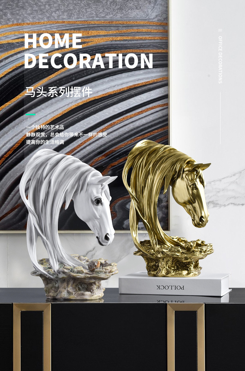 현대 미술 말 머리 수지 공예 조각 홈 입구 흰색 동물 대형 사무실 장식