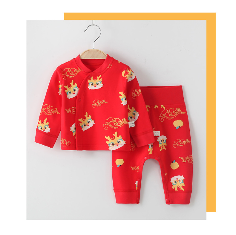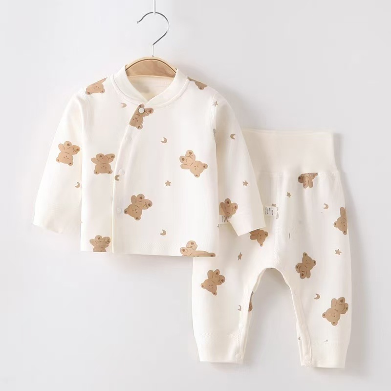 아기의 가을 옷과 바지 세트 분할 순면 높은 허리 배꼽 보호 속옷 봄과 가을 아기의 순면 바디-맞는 잠옷
