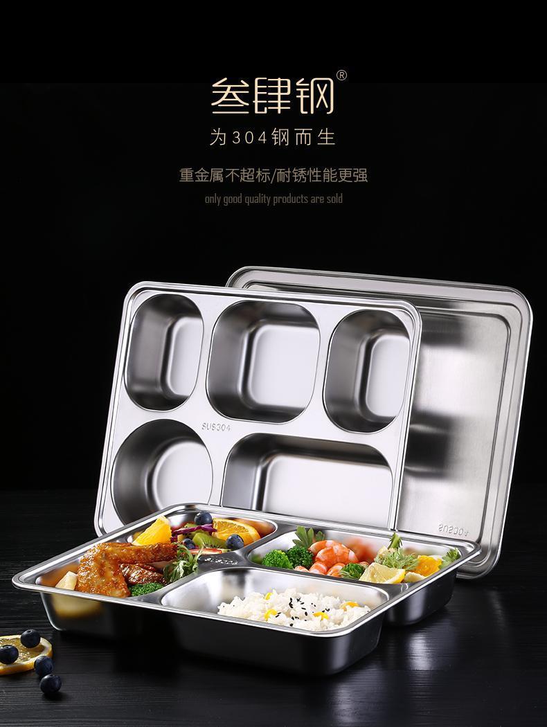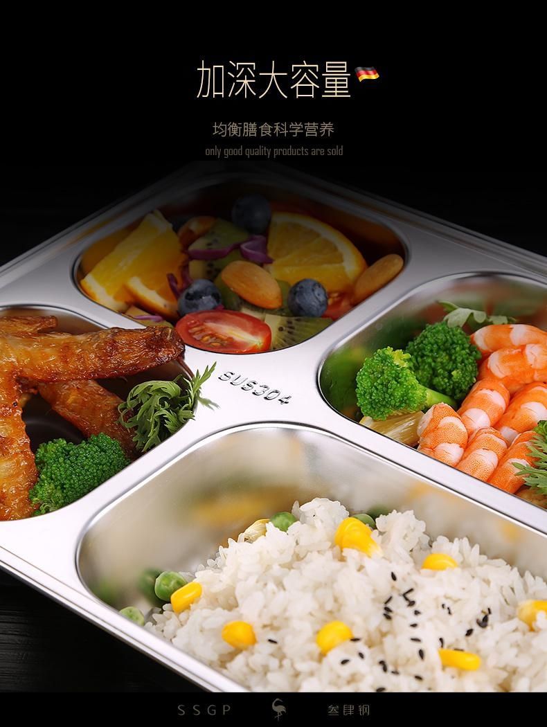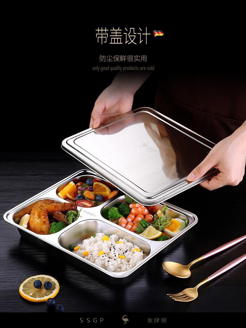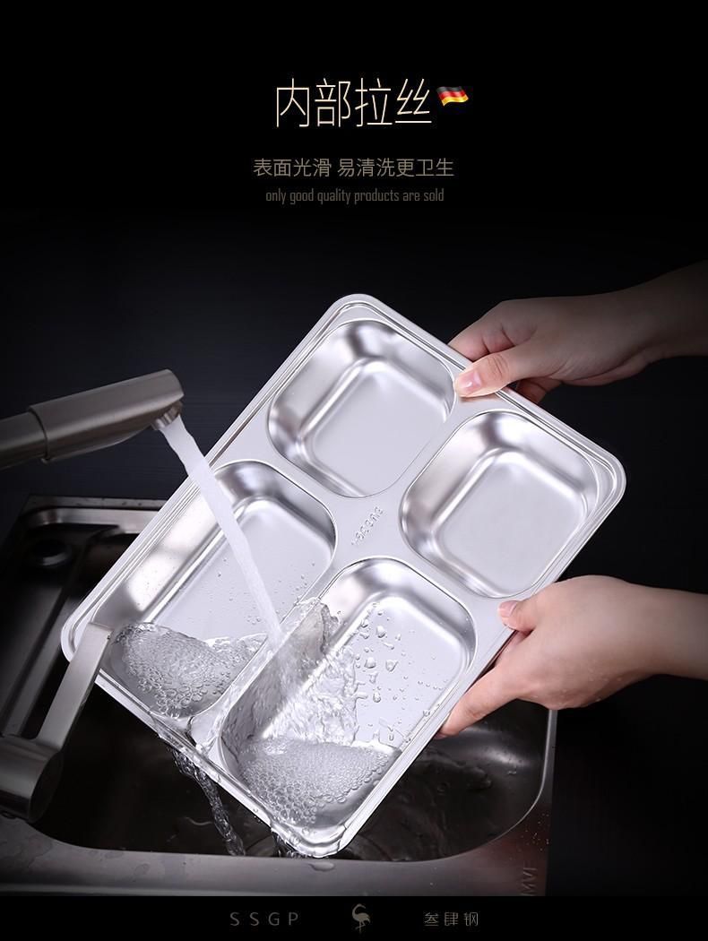 SSGP 부서 디너 플레이트 304 스테인레스 스틸 분리 된 매점 학생 사무실 학생 도시락 성인 4 칸 패스트 푸드 플레이트