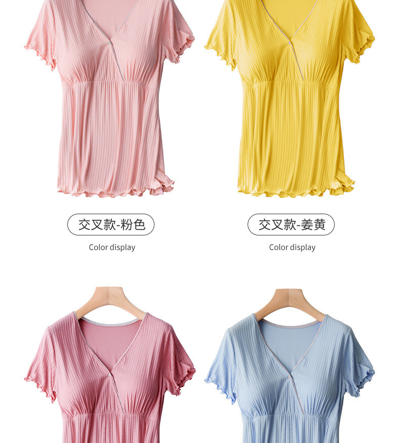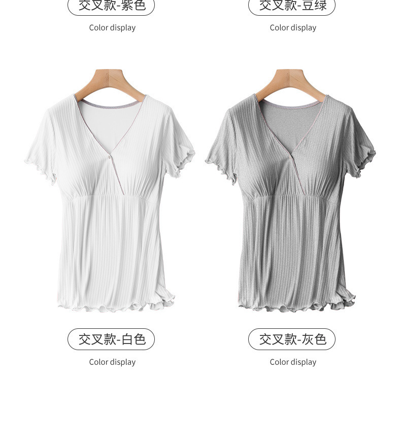 모유 수유 반소매 티셔츠 임산부 파자마 산후 모유 수유 탑 여름 얇은 기본 레이어 셔츠 싱글 피스