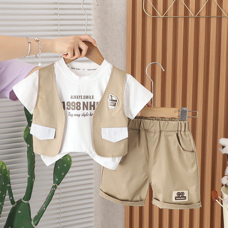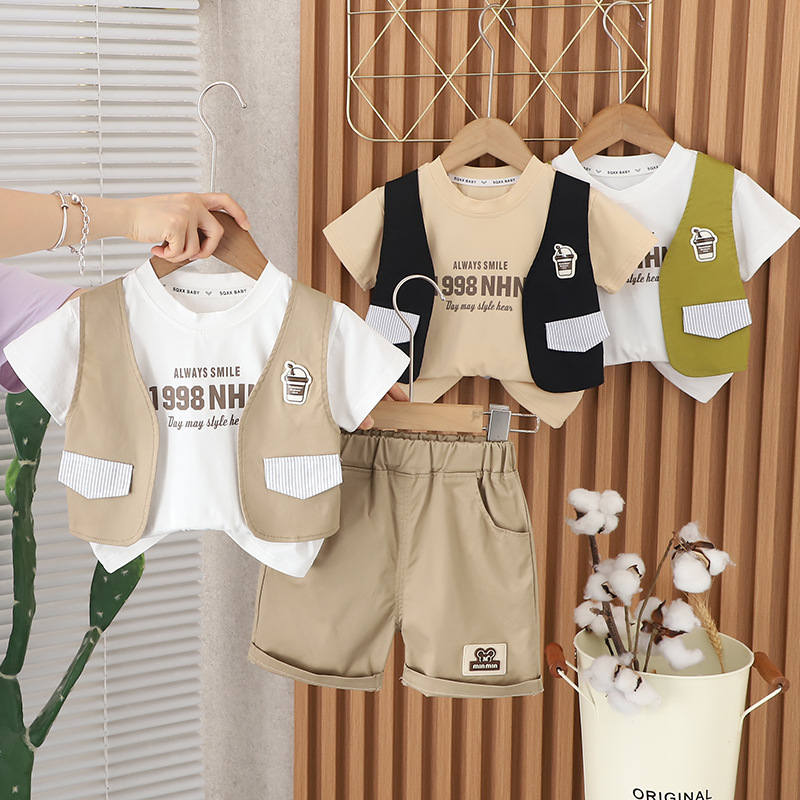 2024 여름 새 소년 조끼 승무원 반팔 세트 남성 아기 캐주얼 반바지 투피스 세트 소스 공장스토어 가기