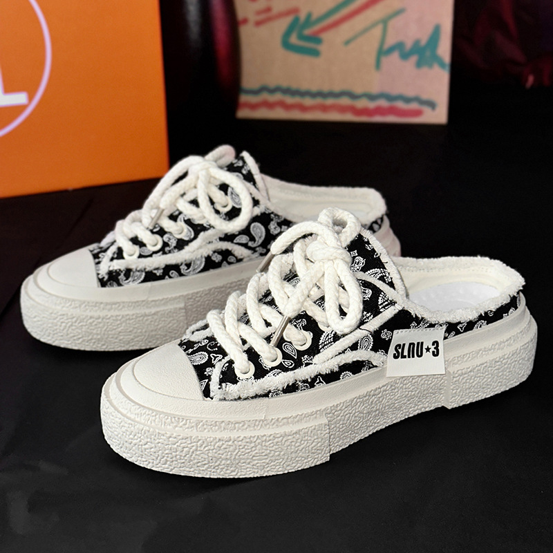 2025 새로운 틈새 디자인 캔버스 신발 남성과 여성 캐주얼 스케이트 신발 커플 스타일 유행 신발 라이브 스트리밍 유행 신발 하프 슬리퍼스토어 가기