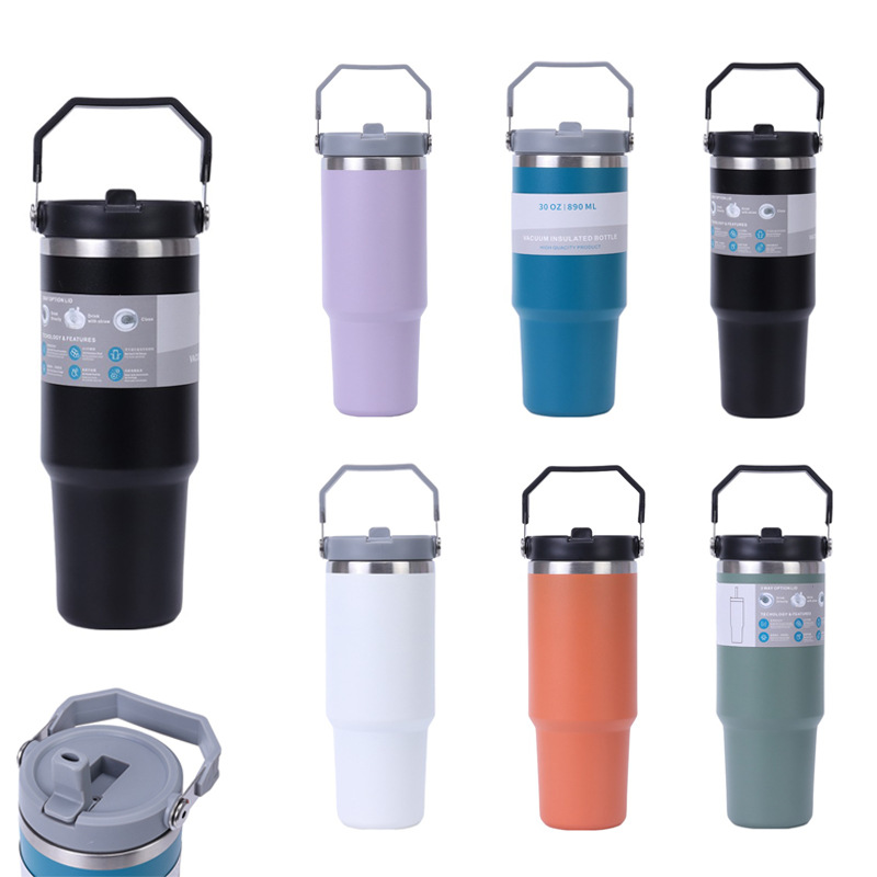국경 간 대용량 아이스 컵 야외 휴대용 자동차 등산 물 컵 휴대용 자동차 컵 밀짚 도매