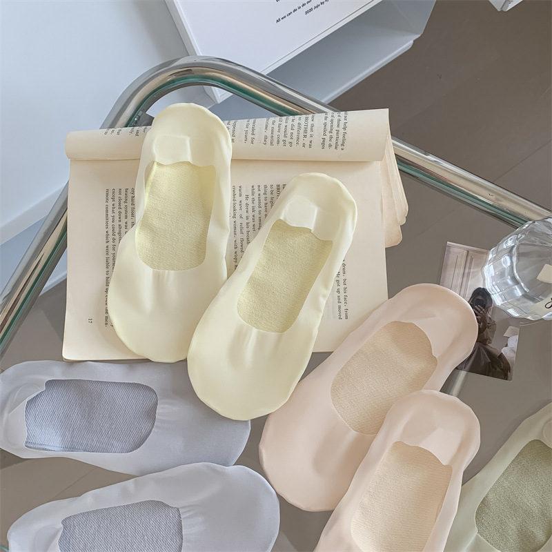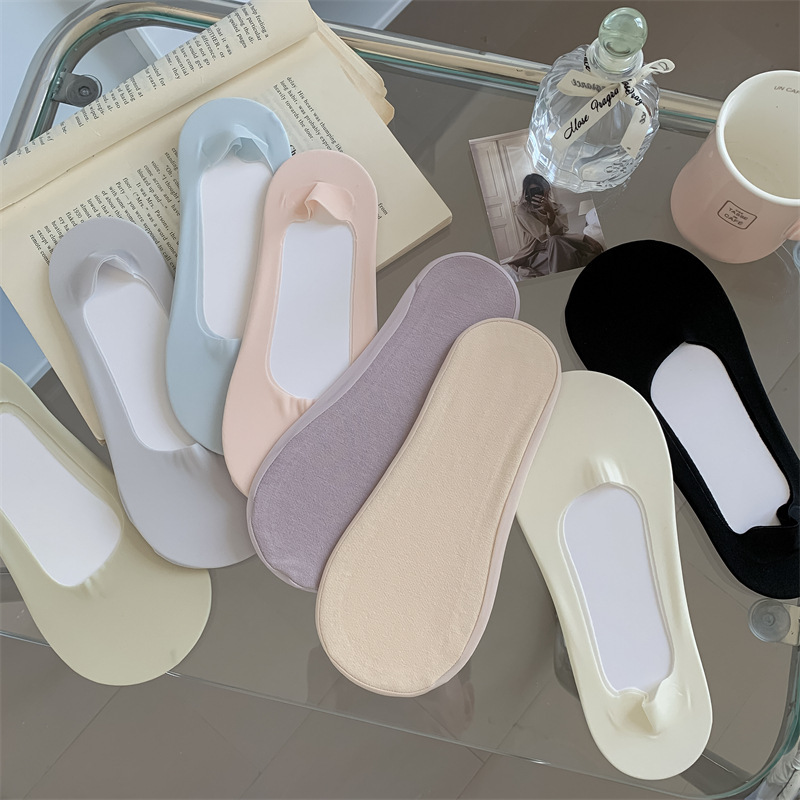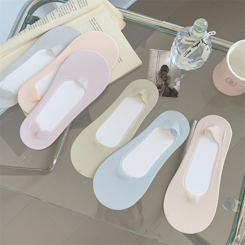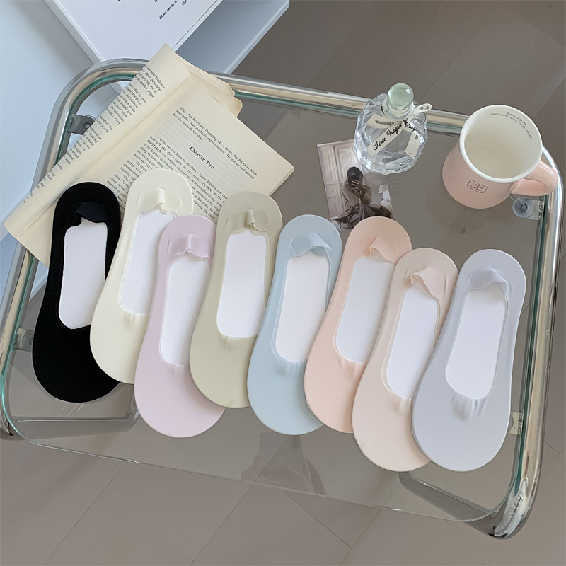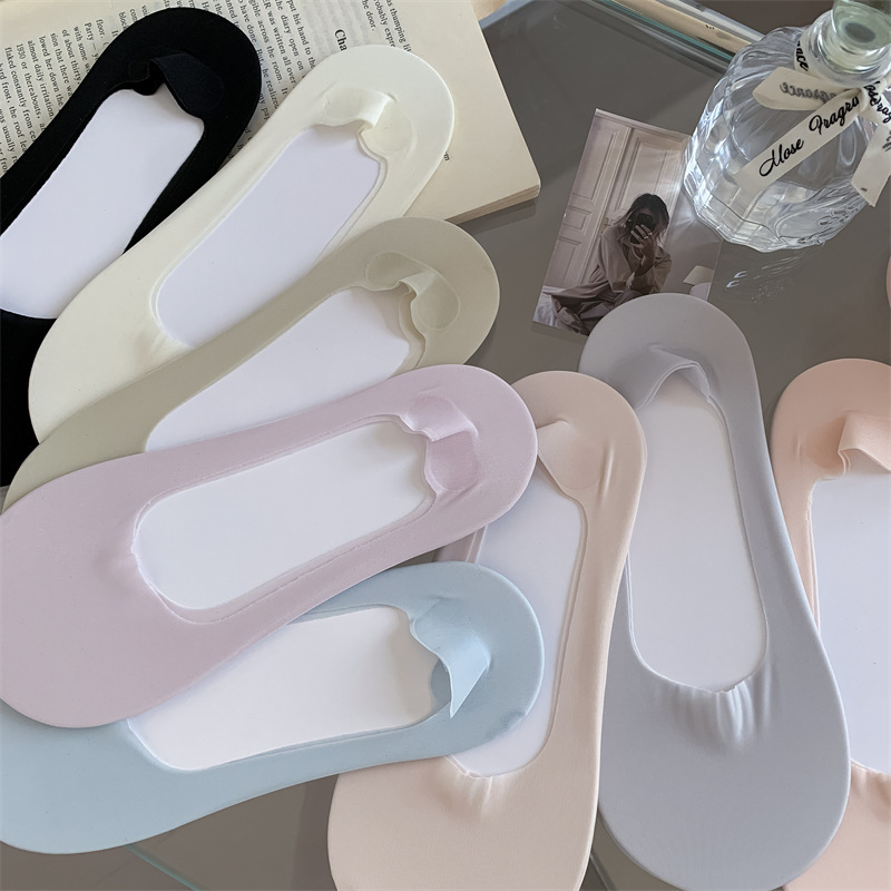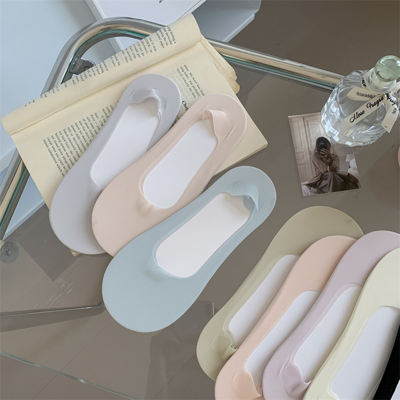 2024 봄과 여름 새로운 여성 양말 캔디 컬러 얇은 얕은 얼음 실크 보이지 않는 양말 면화 바닥 숙녀 보트 양말 도매스토어 가기