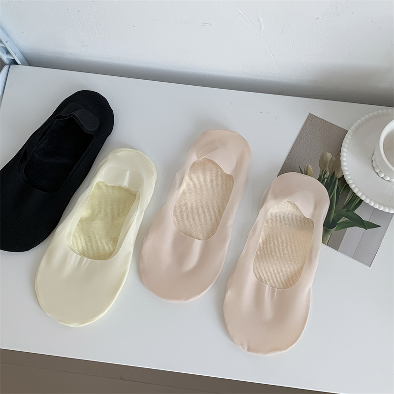 2024 봄과 여름 새로운 여성 양말 캔디 컬러 얇은 얕은 얼음 실크 보이지 않는 양말 면화 바닥 숙녀 보트 양말 도매