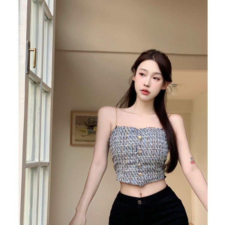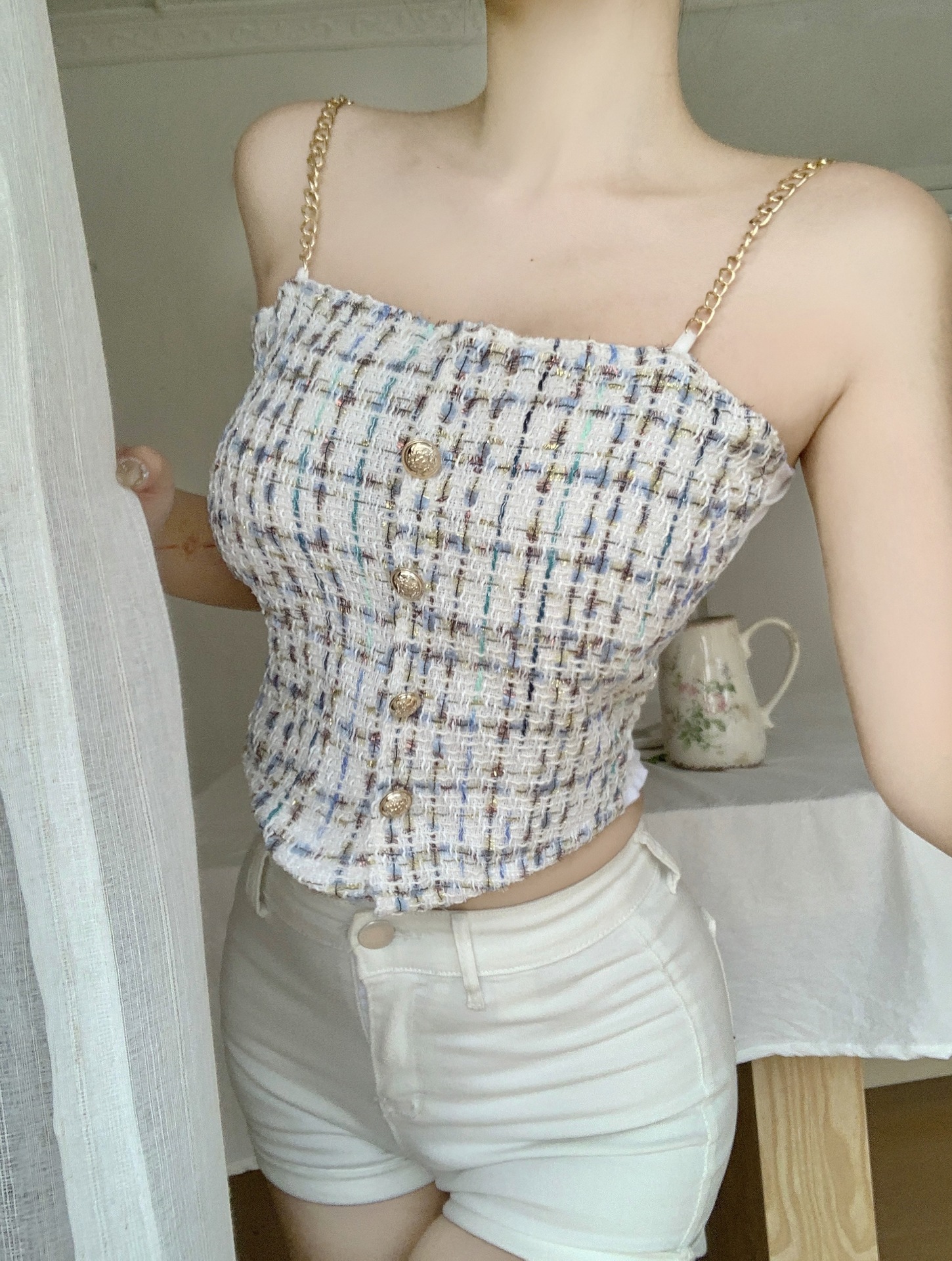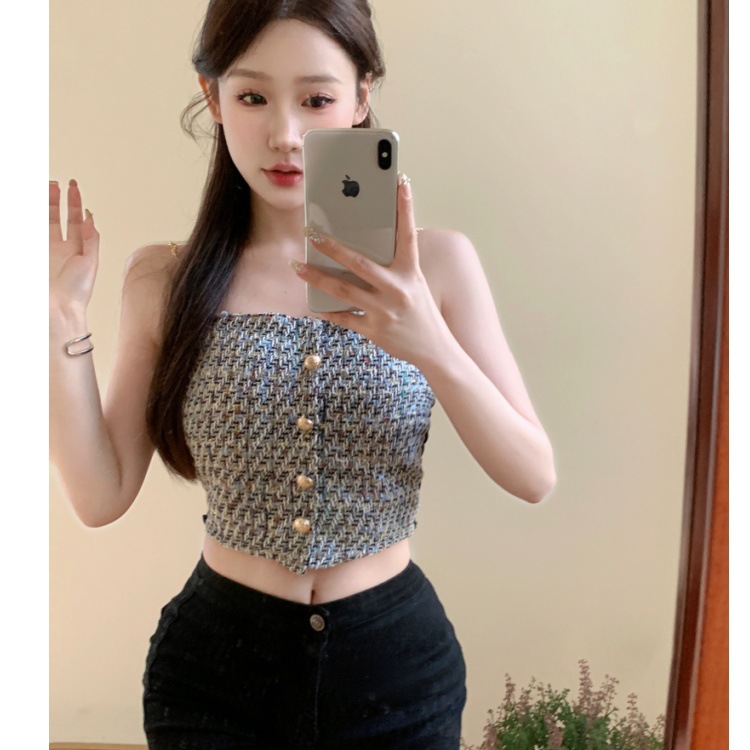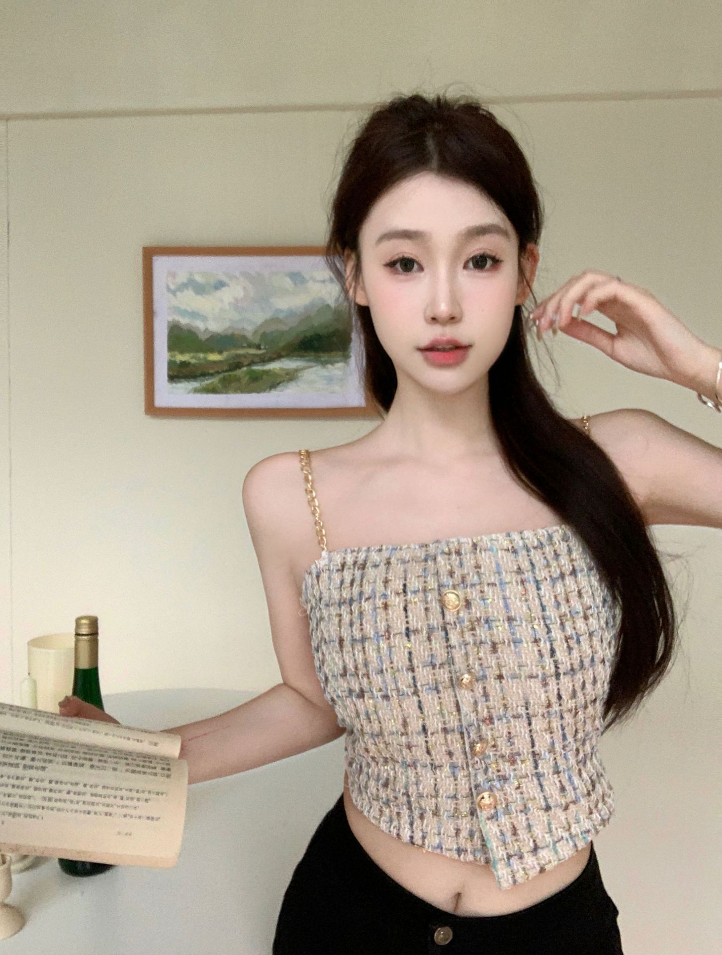 뜨거운 소녀 샤넬 스타일 스트랩리스 작은 조끼 여성 여름 프랑스 우아한 인테리어 슬림 핏 슬리밍 최고 여성 아우터웨어스토어 가기