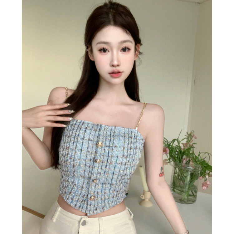 뜨거운 소녀 샤넬 스타일 스트랩리스 작은 조끼 여성 여름 프랑스 우아한 인테리어 슬림 핏 슬리밍 최고 여성 아우터웨어