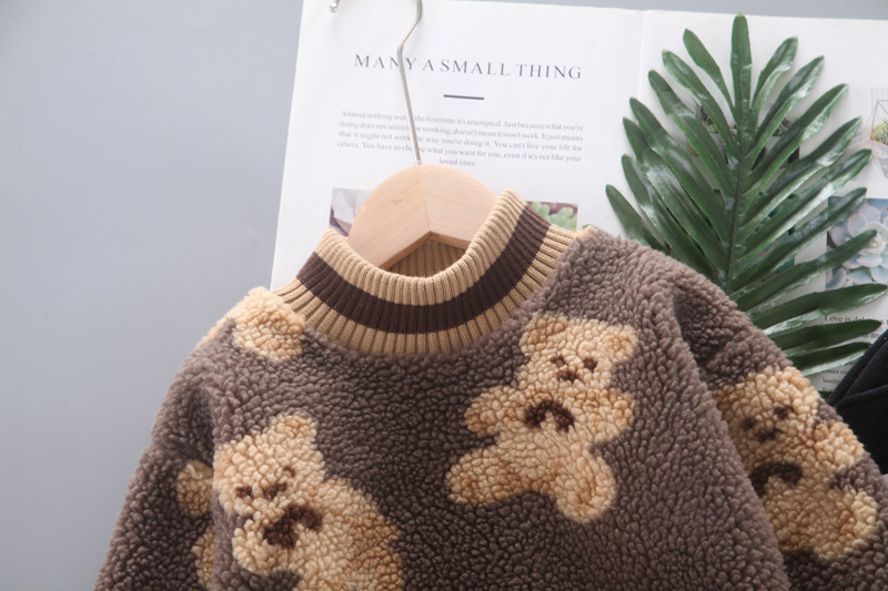 대외 무역 겨울 새로운 남성 아기 승무원 전체 인쇄 만화 곰 서양식 한국 양털 두꺼운 스웨트 셔츠 투피스 세트스토어 가기
