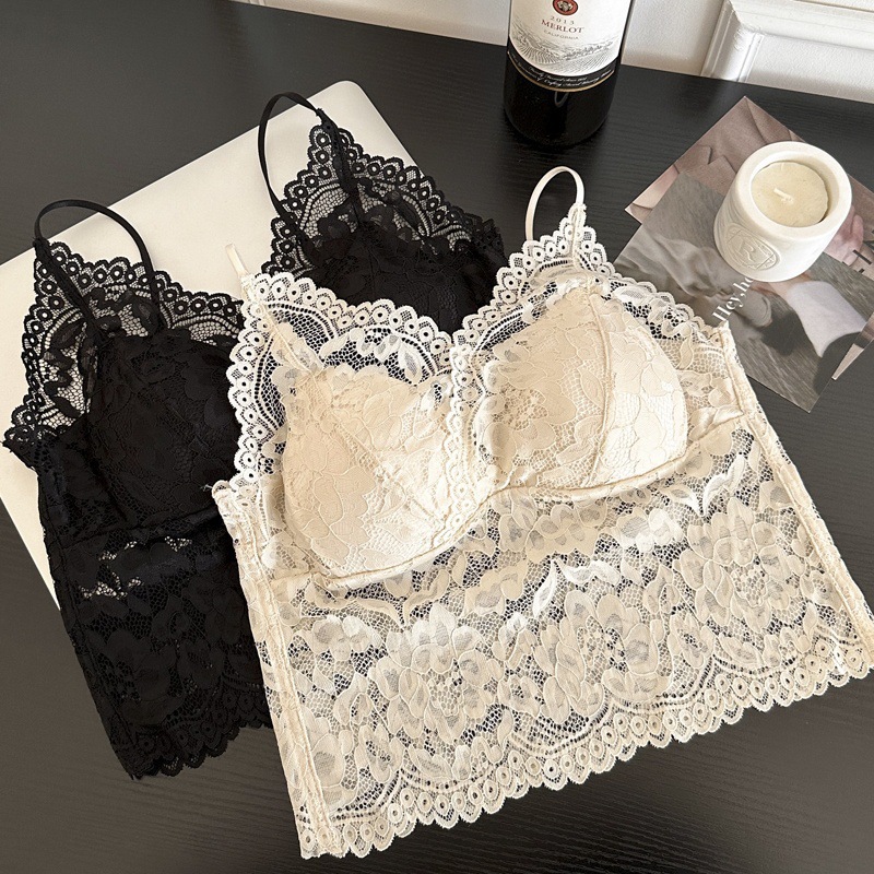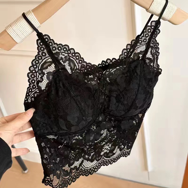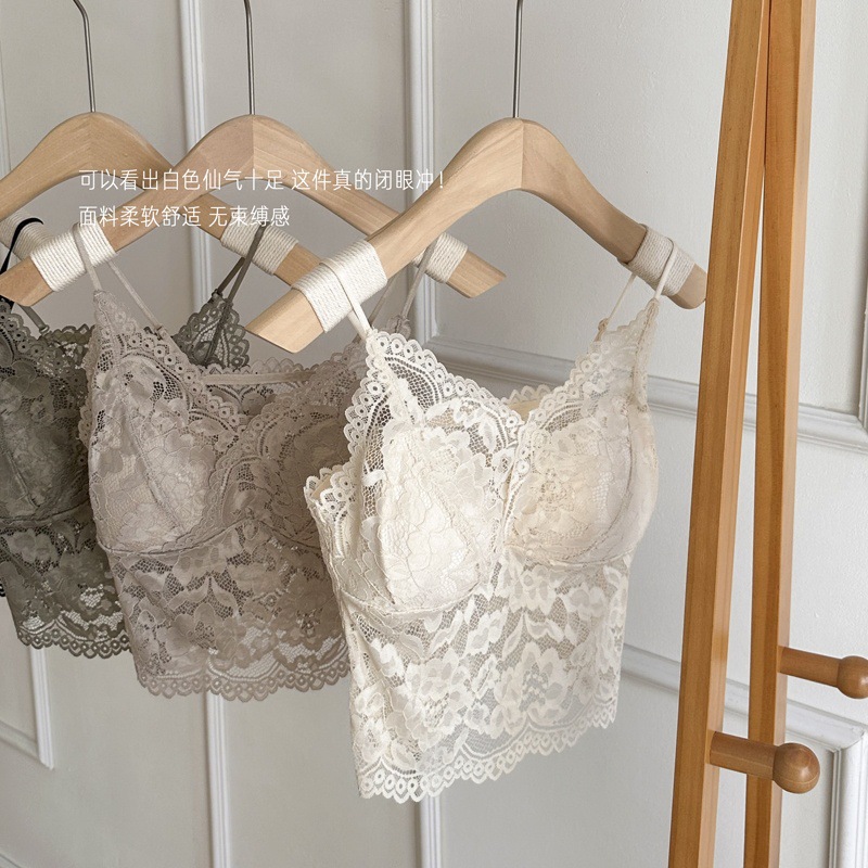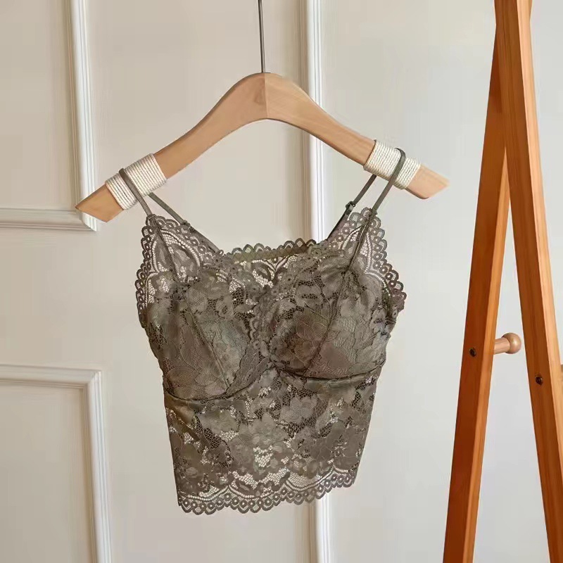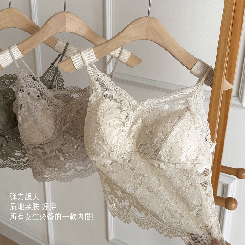 레이스 프렌치 작은 슬링 고정 컵 얇은 어깨 스트랩 속옷 내부 착용 허리 아름다운 등받이 여름 편안한