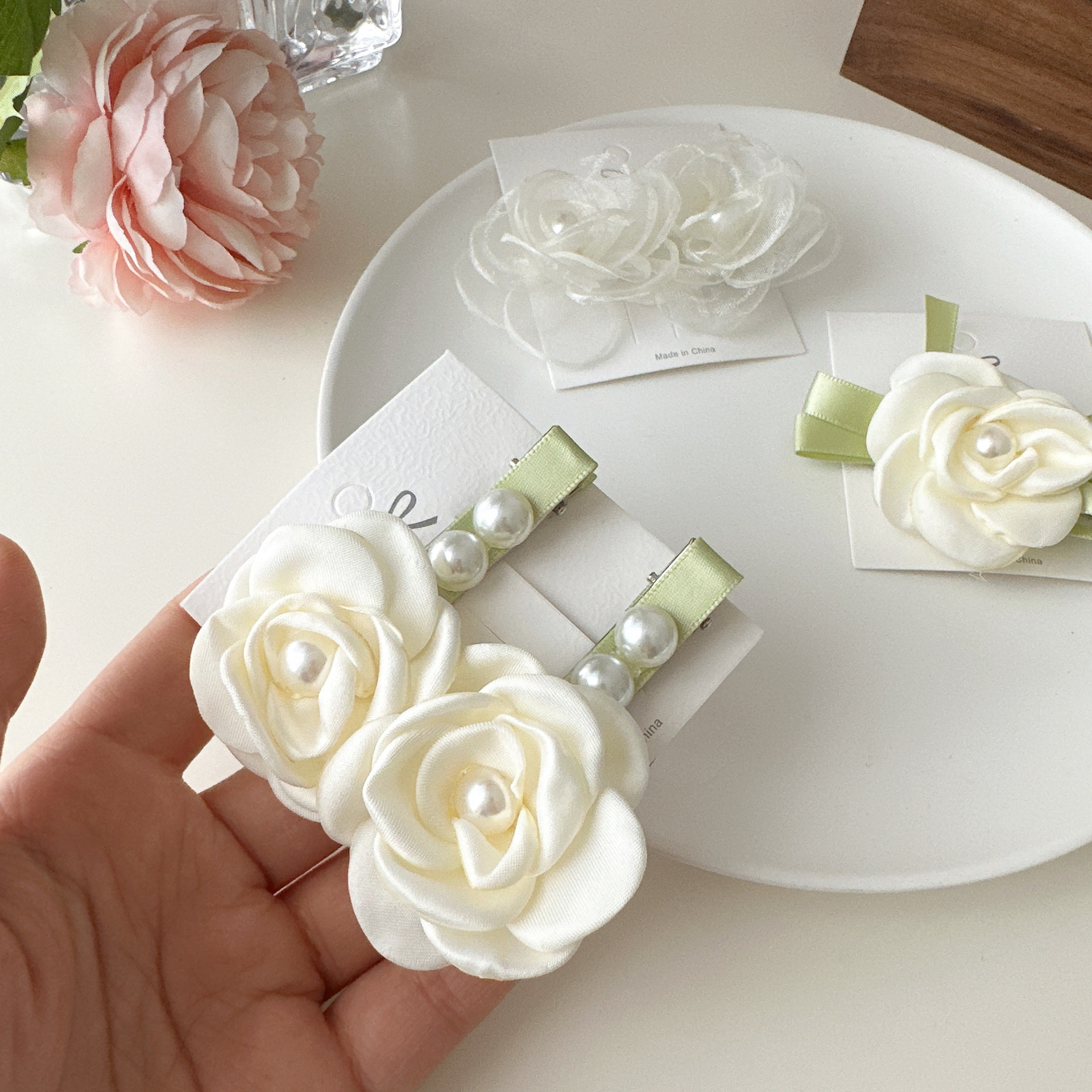 슈퍼 요정 진주 활 동백 머리핀 Bangs 클립 깨진 머리 사이드 클립 덕빌 클립 인터넷 인기 소녀 헤어 액세서리 클립스토어 가기