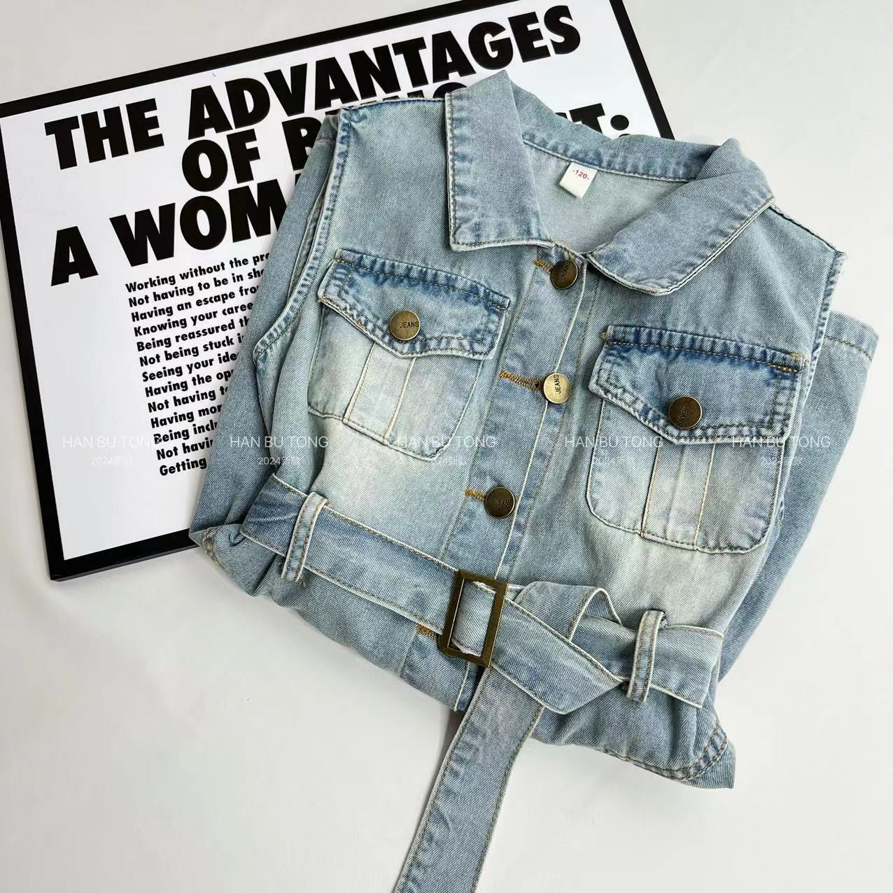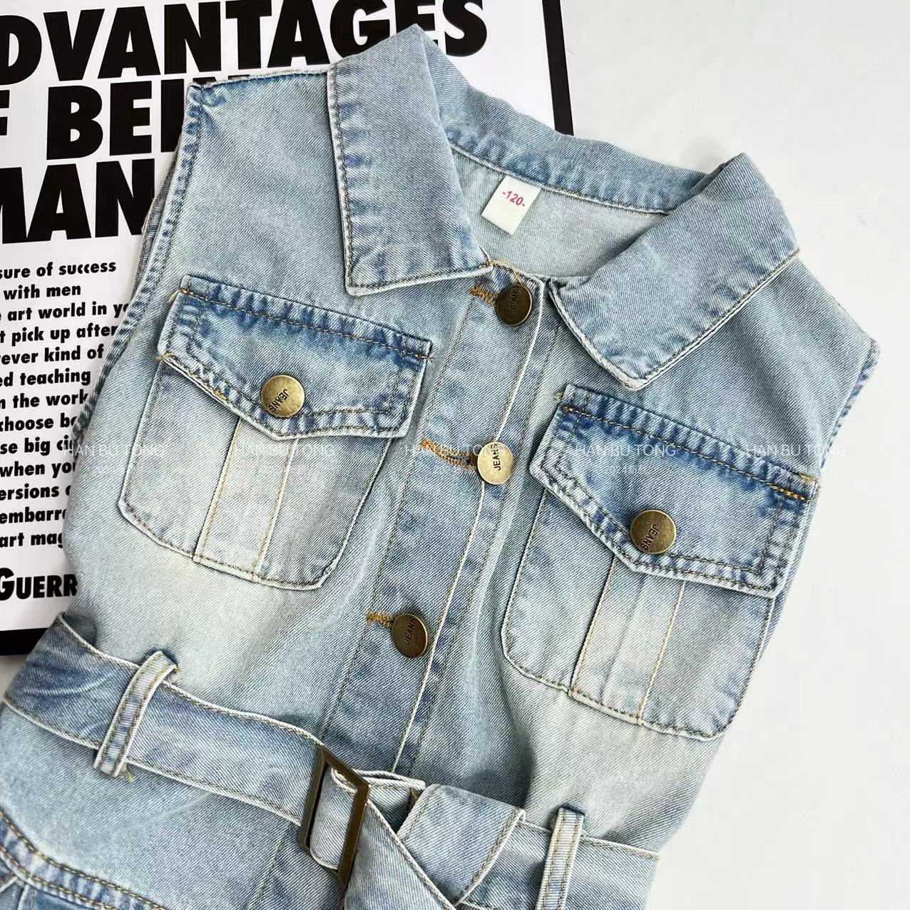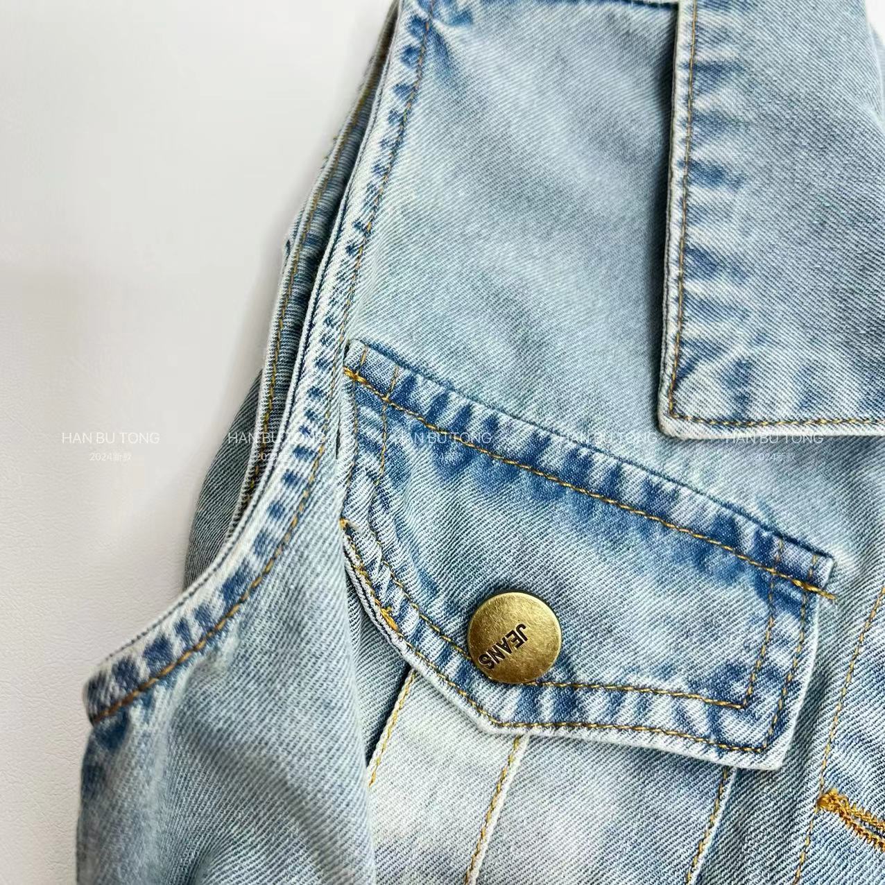 소녀 원피스 2024 년 여름 새로운 어린이 한국식 민소매 조끼 공주 원피스 서양식 여름 데님 원피스 트렌디