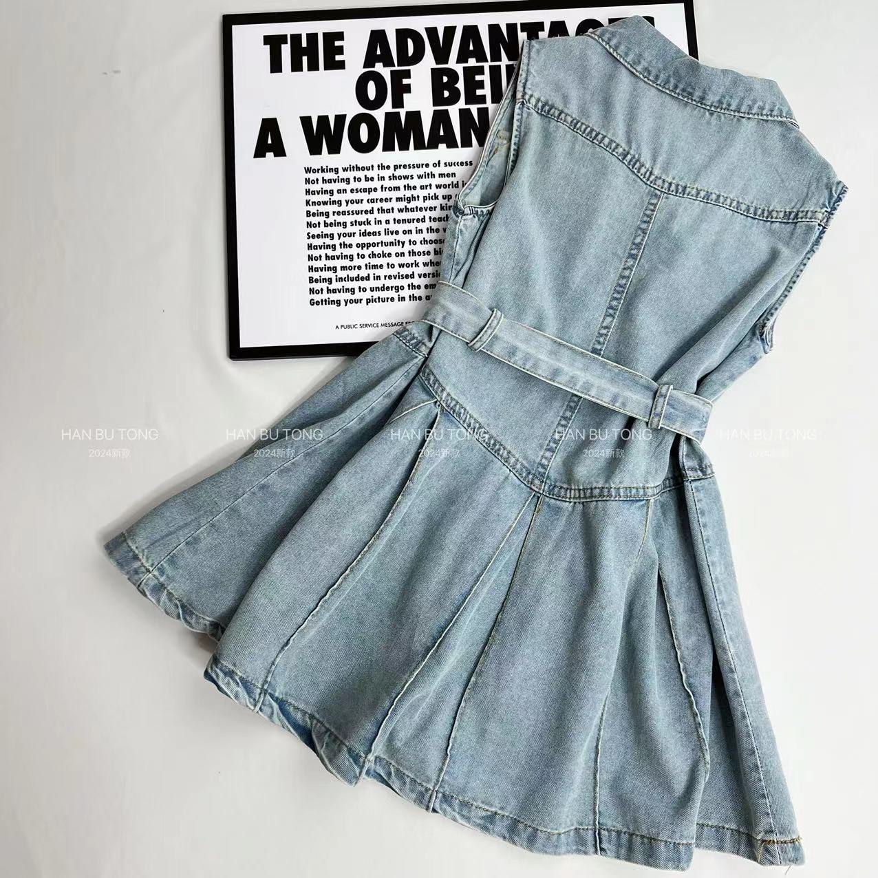 소녀 원피스 2024 년 여름 새로운 어린이 한국식 민소매 조끼 공주 원피스 서양식 여름 데님 원피스 트렌디스토어 가기