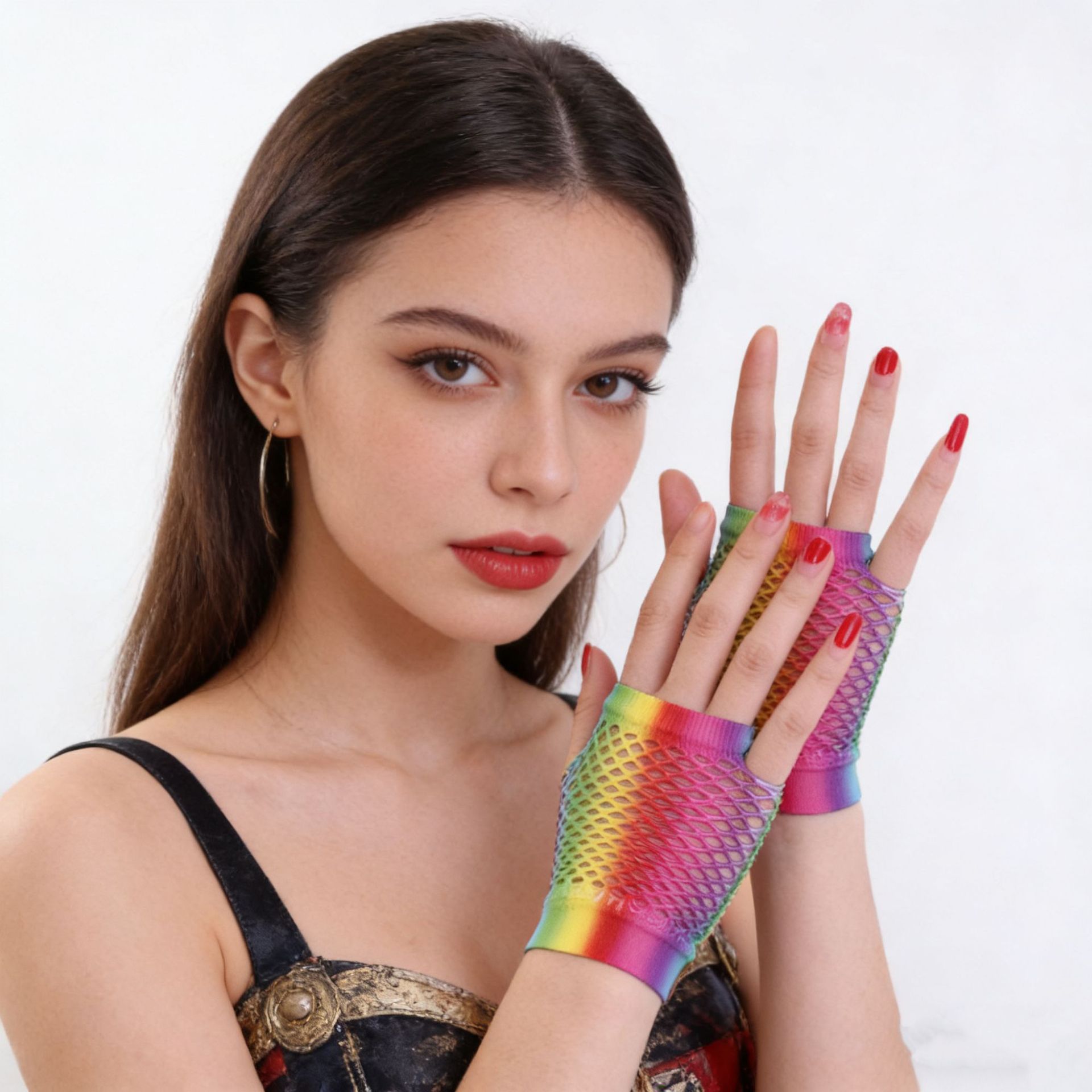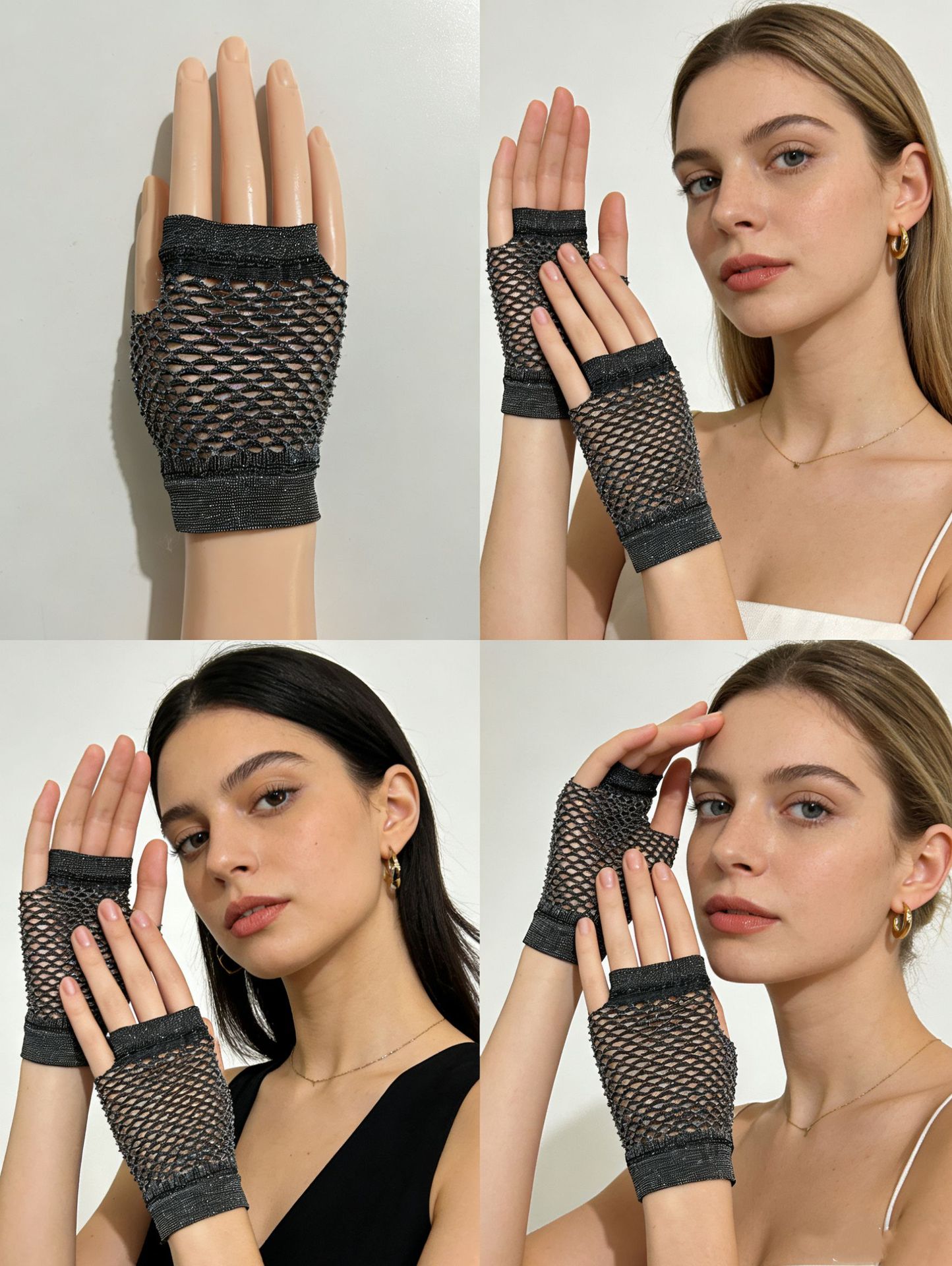 짧은 낚시 그물 장갑 나이트 클럽 펑크 메쉬 장갑 할로우 할로윈 장갑을위한 멀티 컬러 섹시한 스트레치 장갑