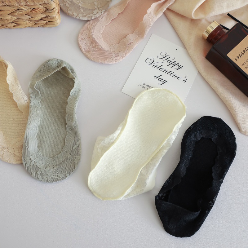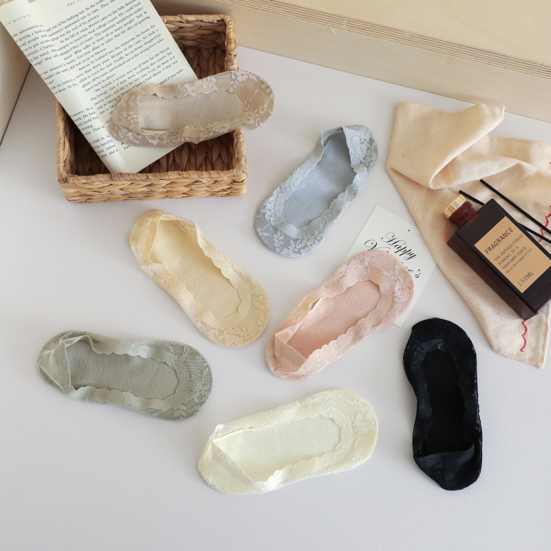 24 년 봄과 여름 보트 양말 슈퍼 얕은 입 여성 레이스 보이지 않는 양말은 실리콘 미끄러짐 아이스 실크 짧은면 양말로 떨어지기 쉽지 않습니다.스토어 가기