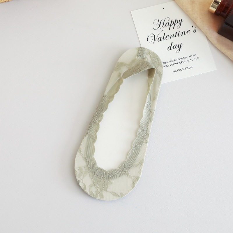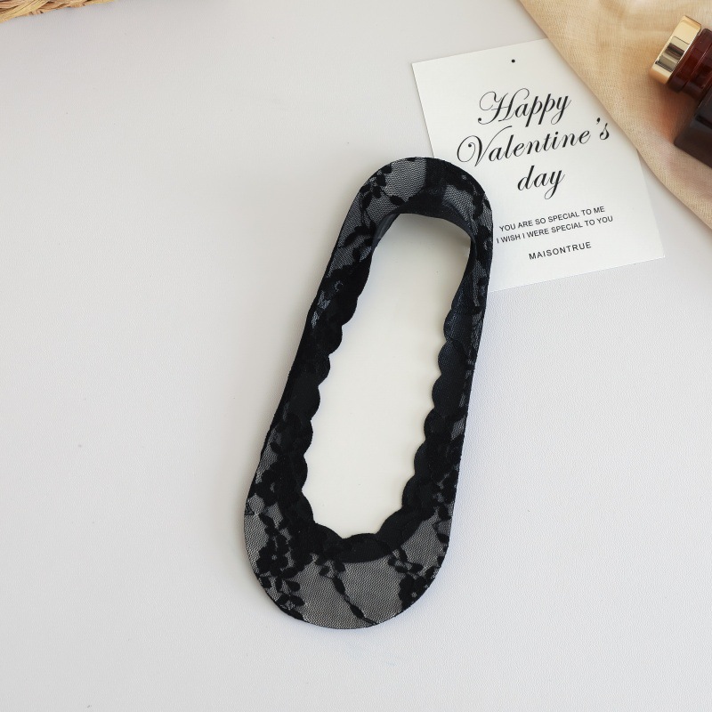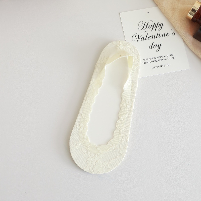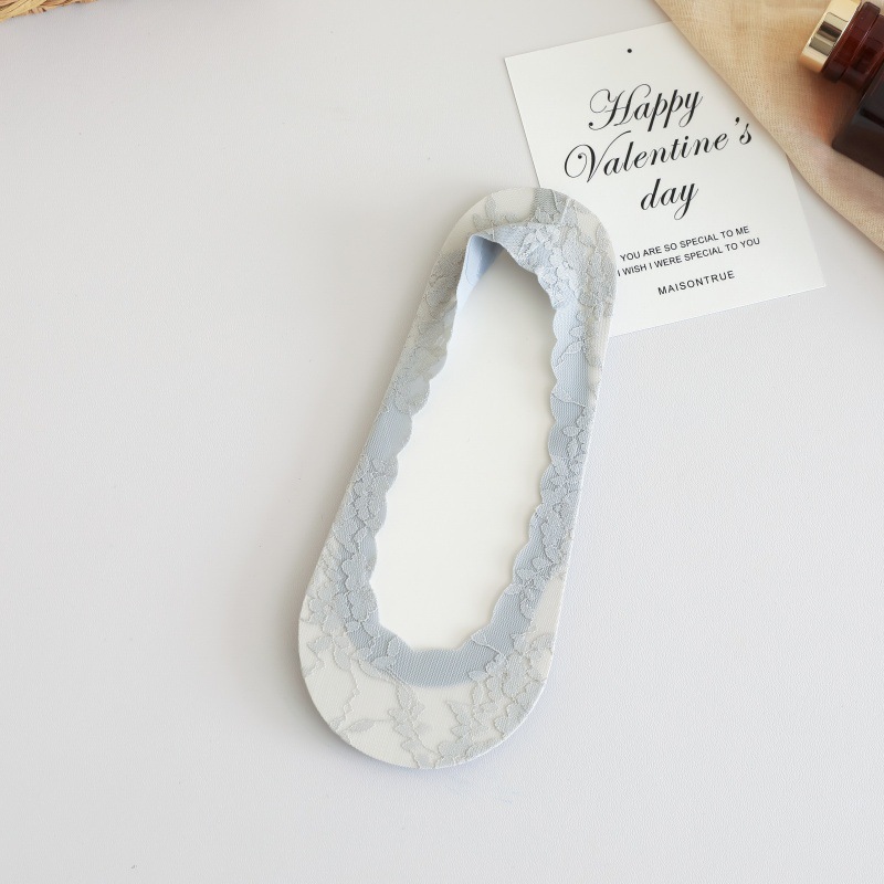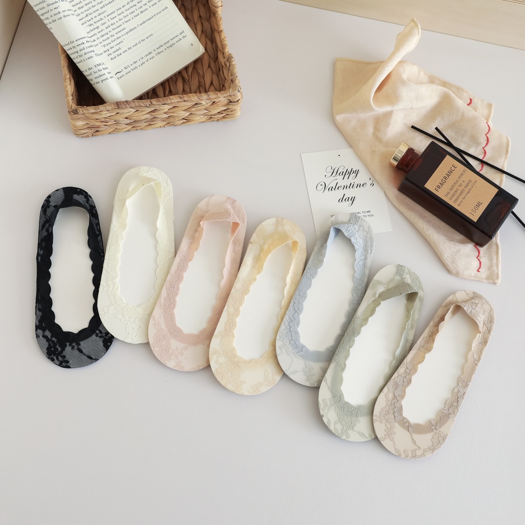 24 년 봄과 여름 보트 양말 슈퍼 얕은 입 여성 레이스 보이지 않는 양말은 실리콘 미끄러짐 아이스 실크 짧은면 양말로 떨어지기 쉽지 않습니다.