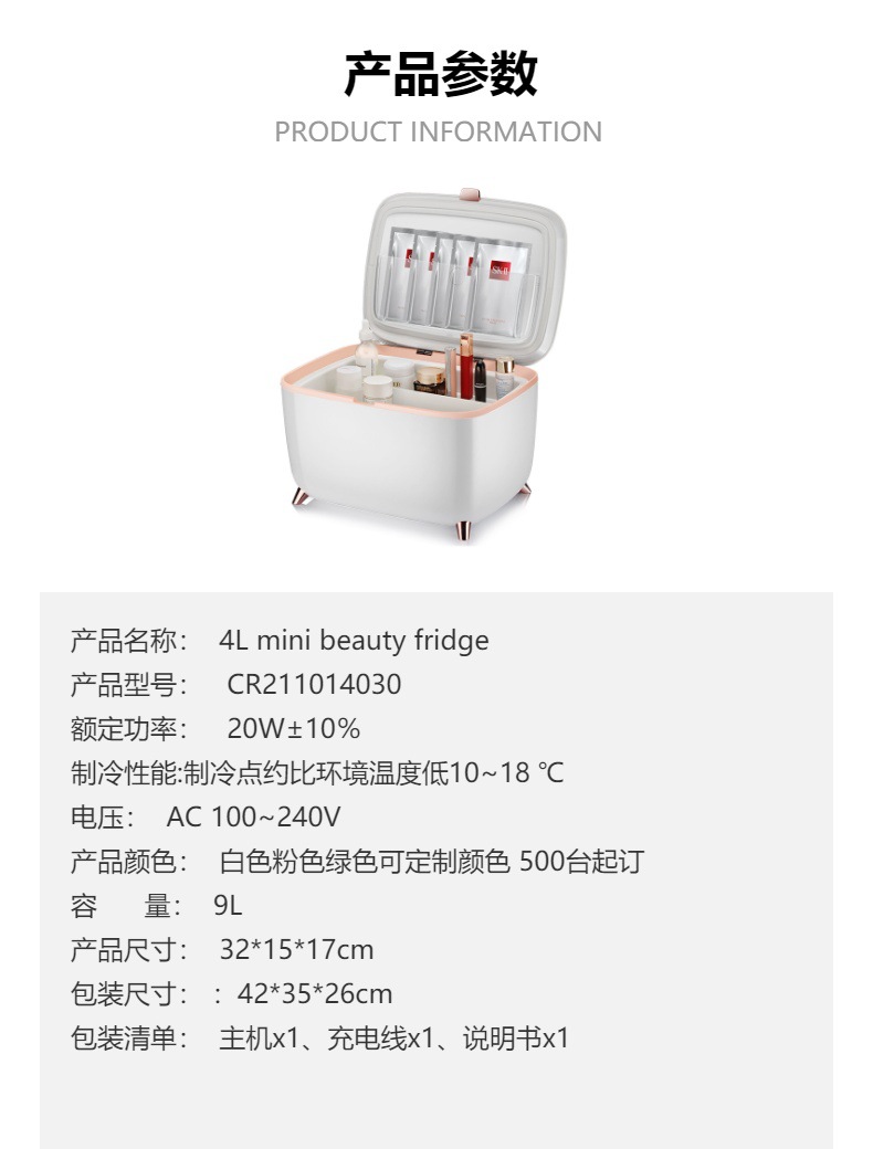 새로운 9L 홈 기숙사 뷰티 메이크업 냉장고 편리한 음소거 마스크 화장품 미니 냉장고 블루투스 미니 냉장고