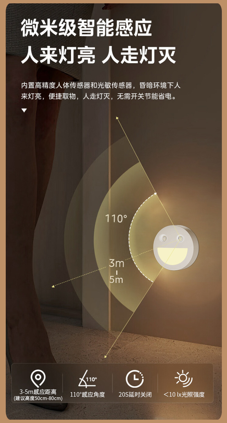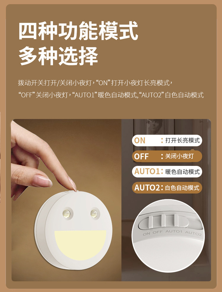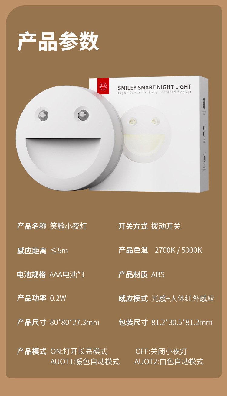 웃는 똑똑한 밤 빛 건조한 배터리 자기 무선 인체 유도 램프 침실 침대 옆 통로 장식 창조적 인 램프
