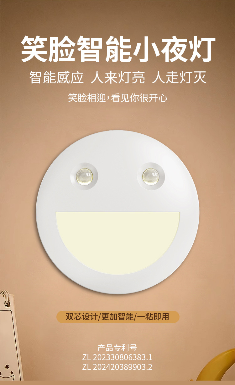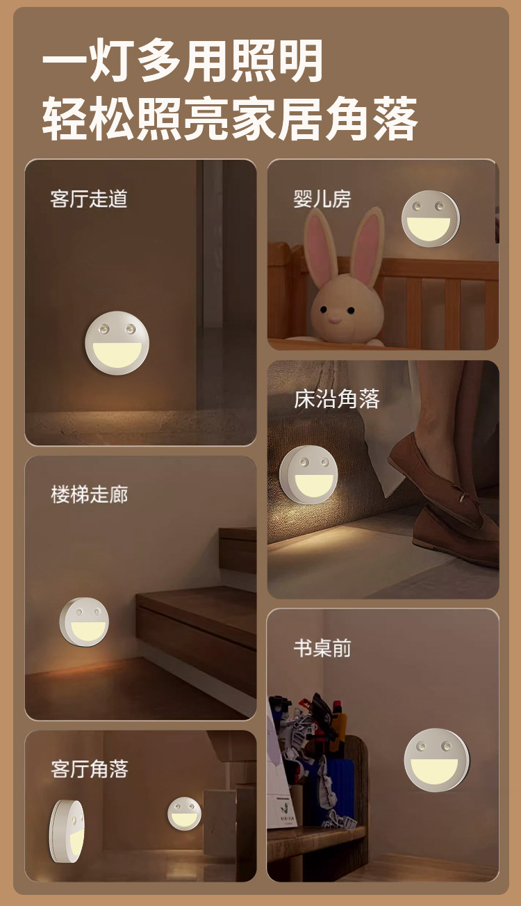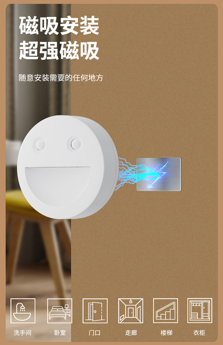 웃는 똑똑한 밤 빛 건조한 배터리 자기 무선 인체 유도 램프 침실 침대 옆 통로 장식 창조적 인 램프스토어 가기