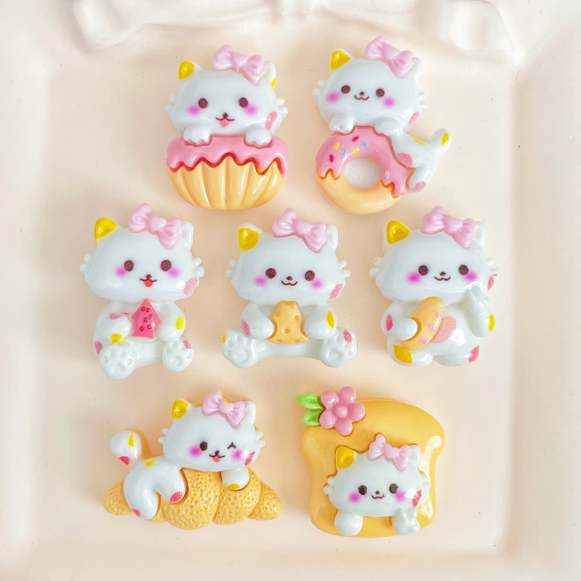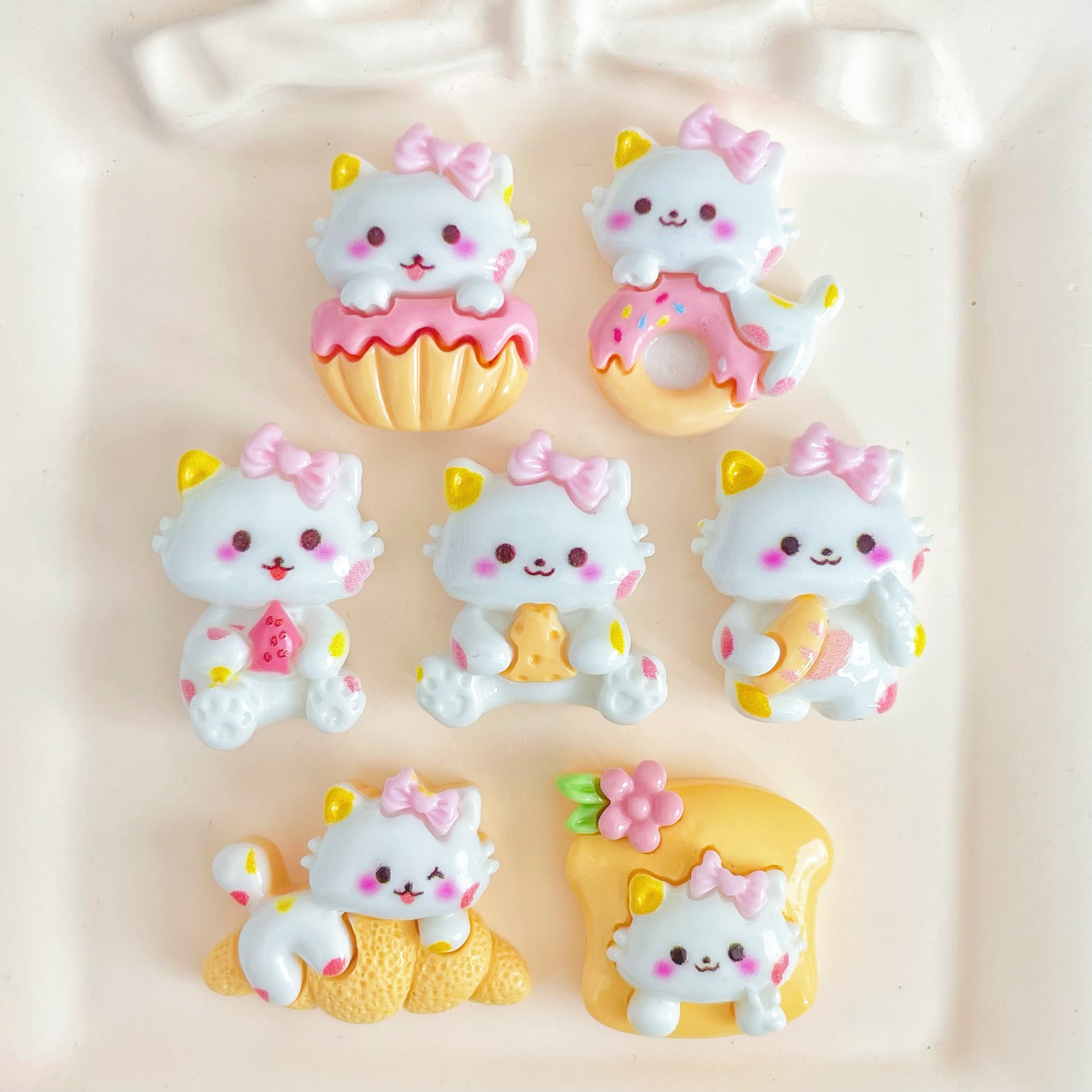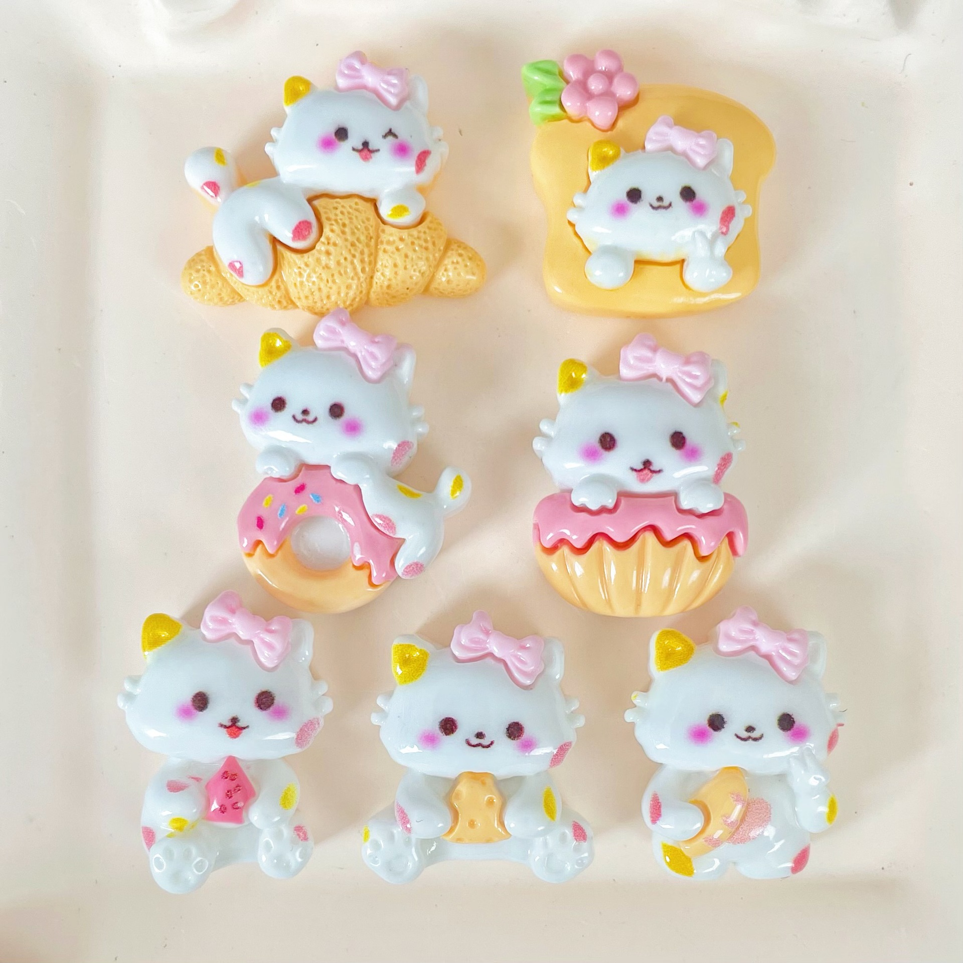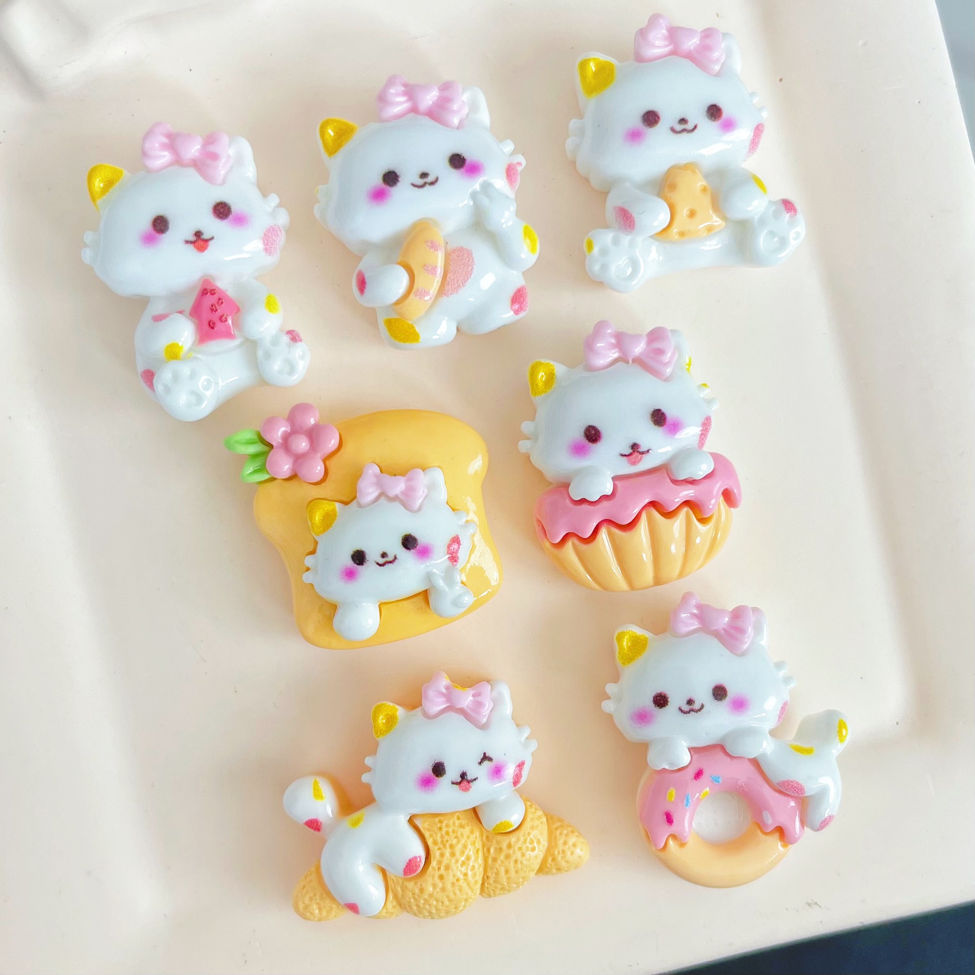 음식과 놀이 빵 도넛 흰 고양이 수지 액세서리 헤어핀 휴대 전화 케이스 구멍 신발 문구 보관 액세서리