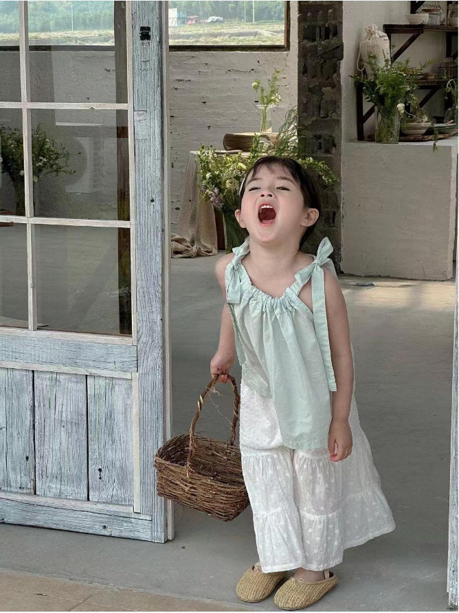 24 여름 새 스타일 드로우 스트링 조정 가능한 슬링 인형 셔츠 여성용 달콤하고 신선한 레이스 업 탑 및 올 매치 컬롯스토어 가기