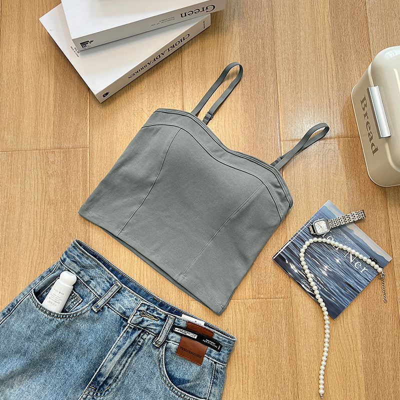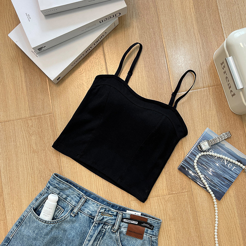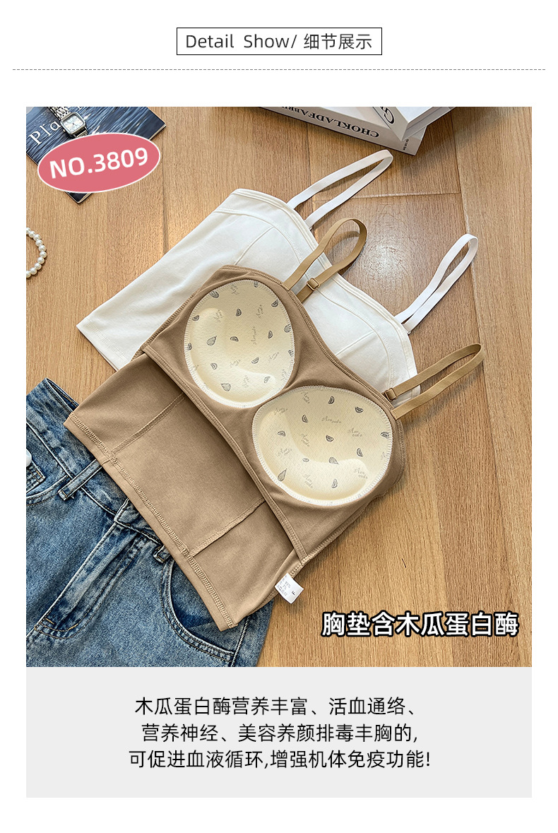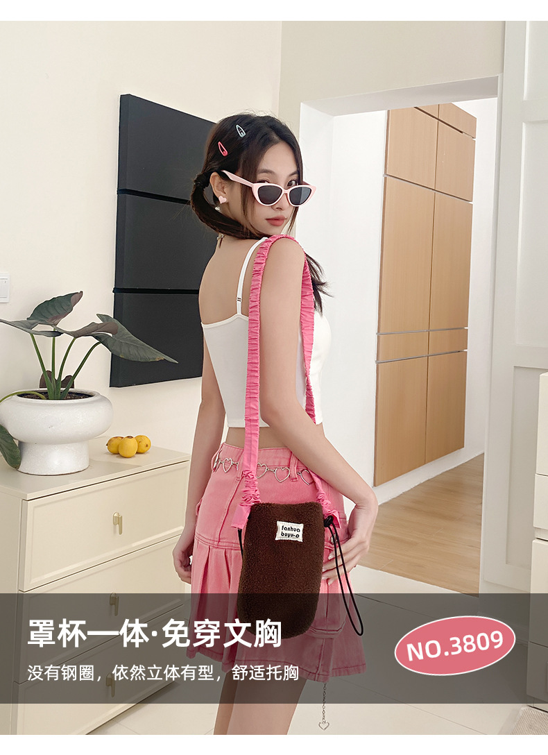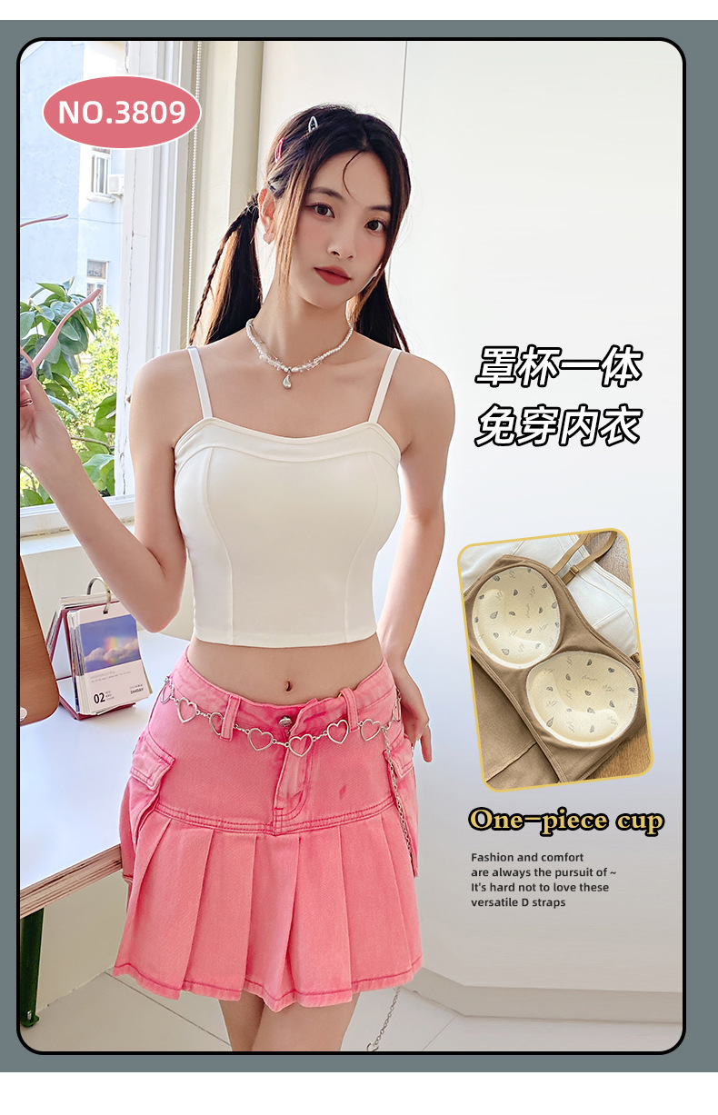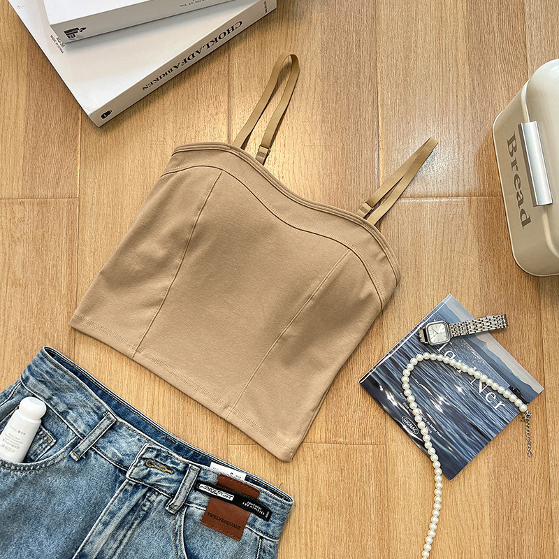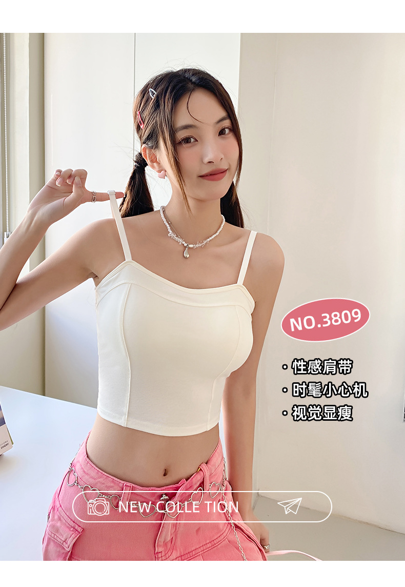 여름 신상 만능 패션 조끼 여성용 단색 슬림핏 가슴 보정 무봉제 푸쉬업 브라