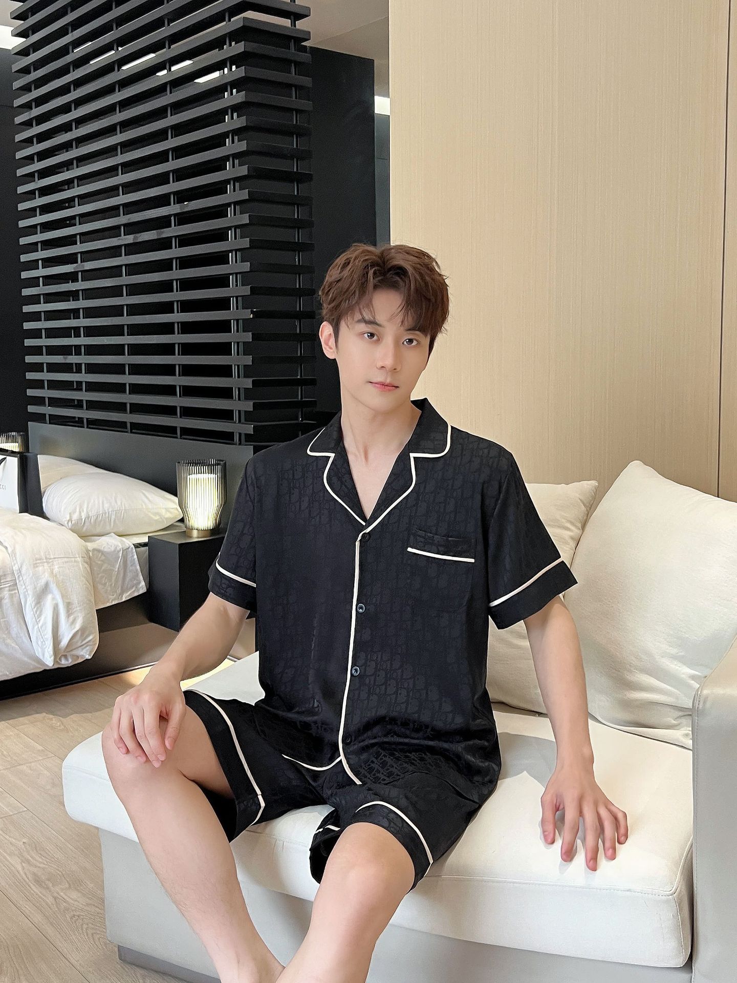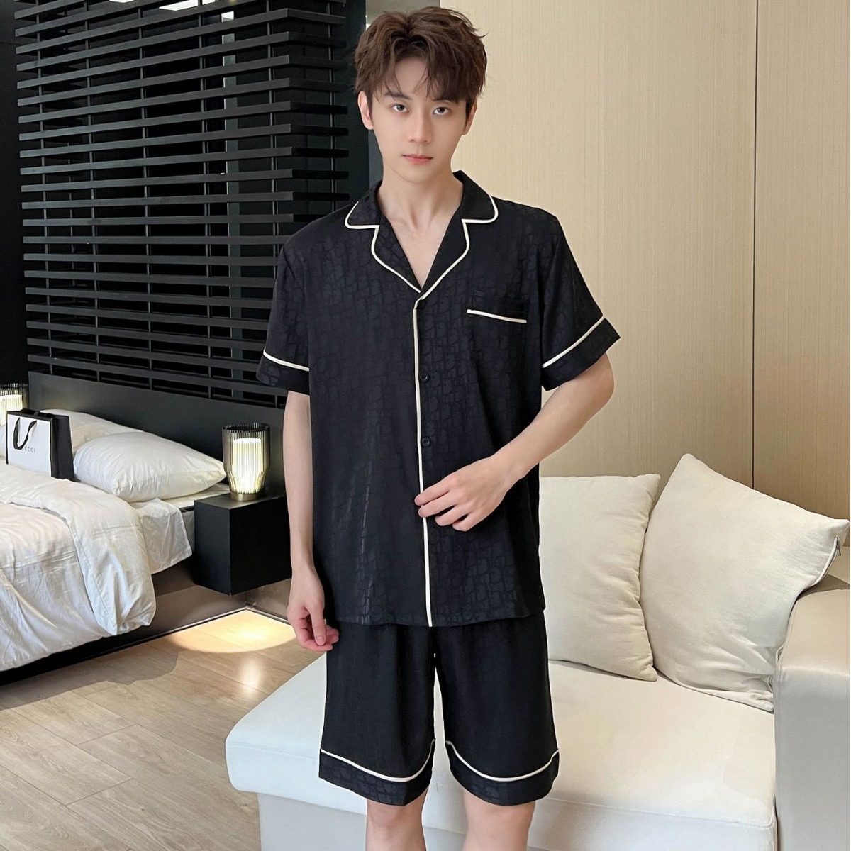 커플 잠옷 여성 아이스 실크 여름 반팔 반바지 투피스 세트 남성 카디건 패션 간단한 홈 의류 세트 850