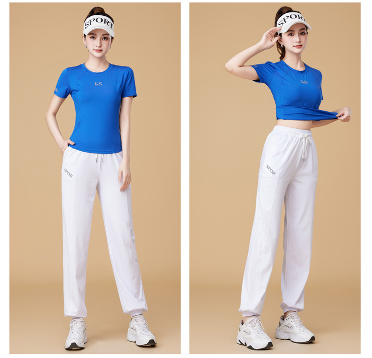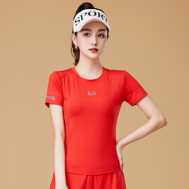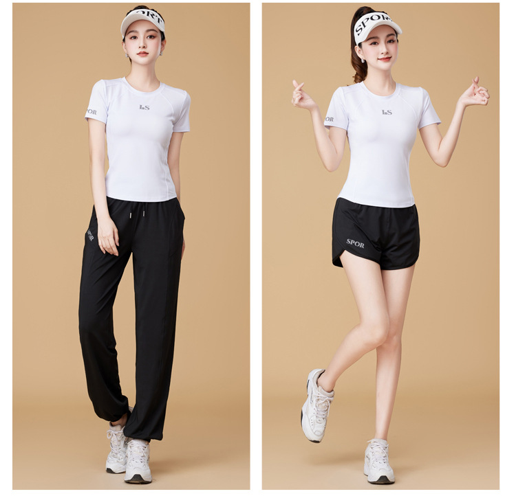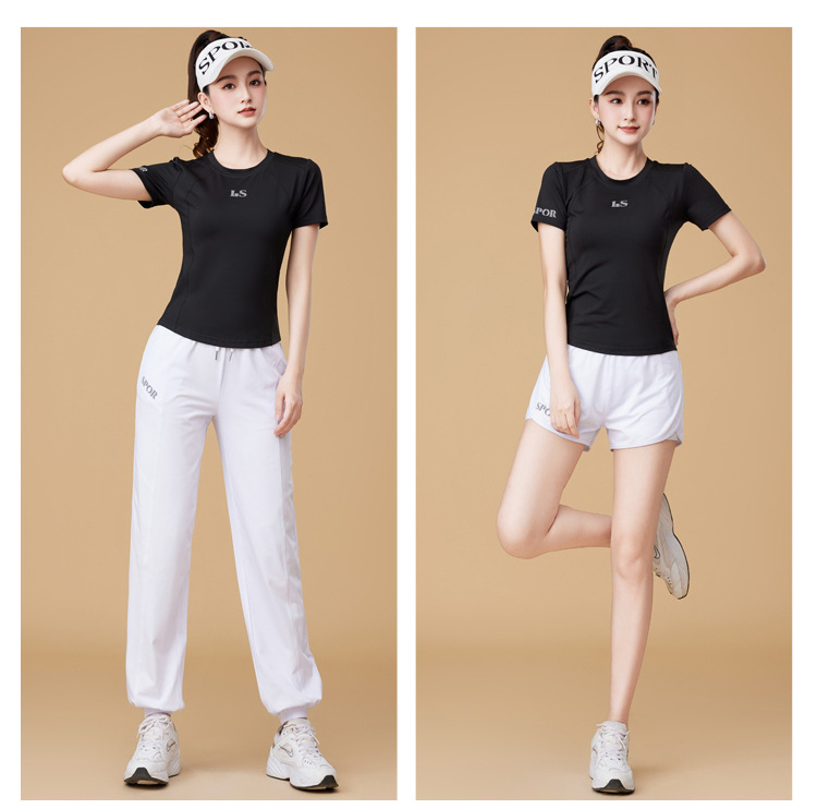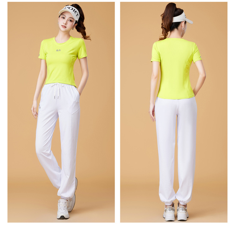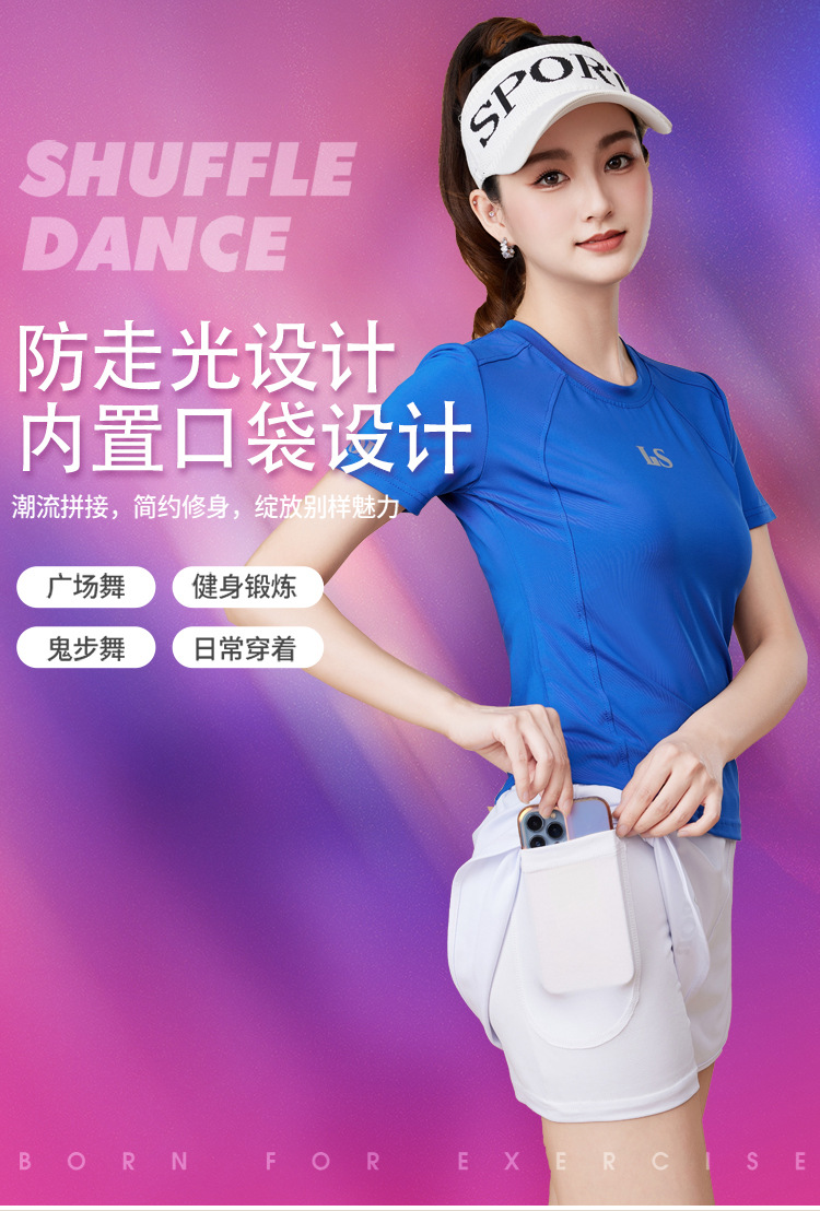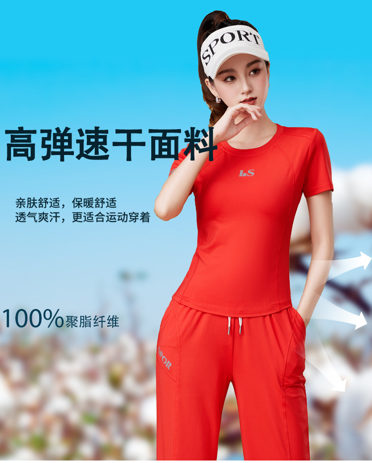 봄과 여름 운동복 피트니스 반팔 티셔츠 최고 빠른 건조 그룹 요가 달리기 캐주얼 스퀘어 댄스 의류 반바지