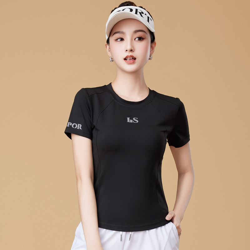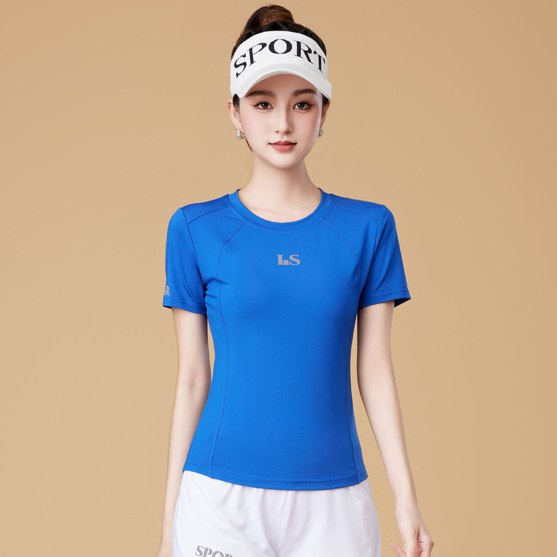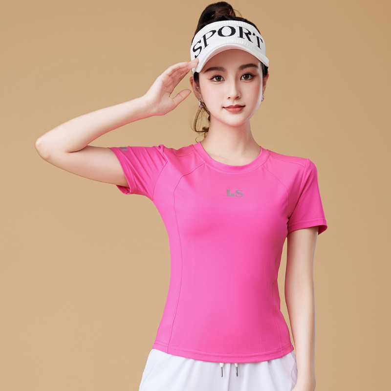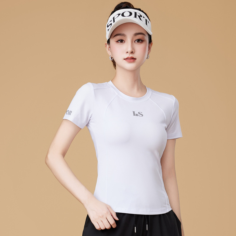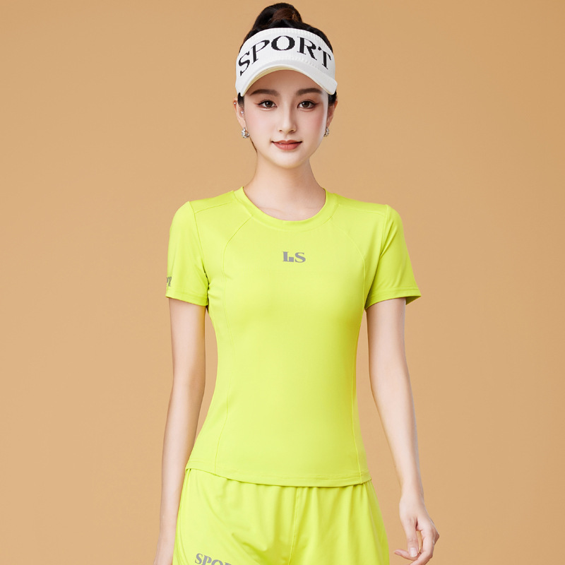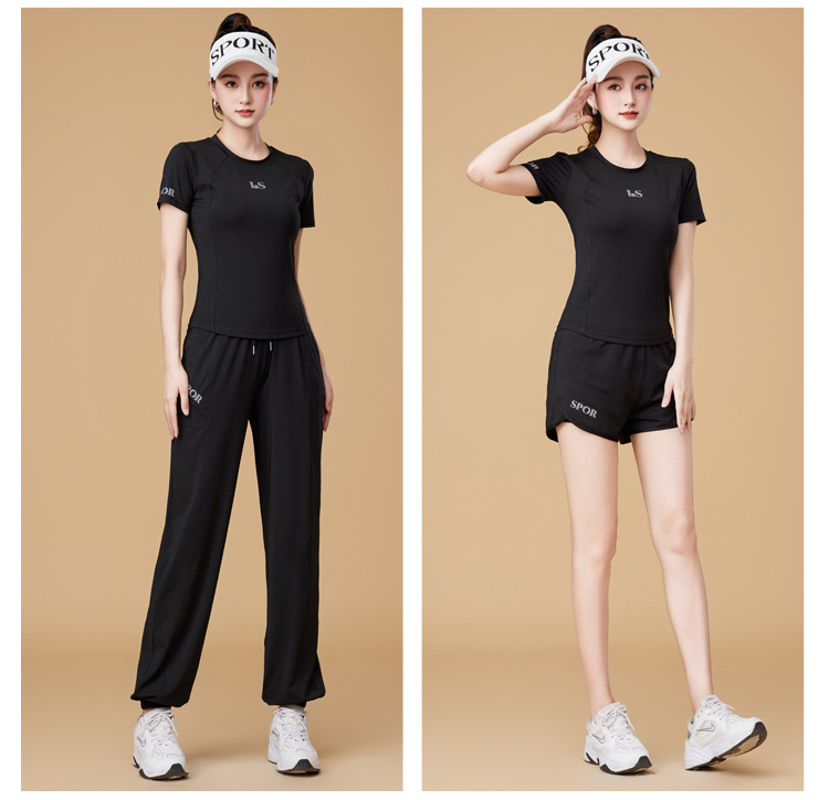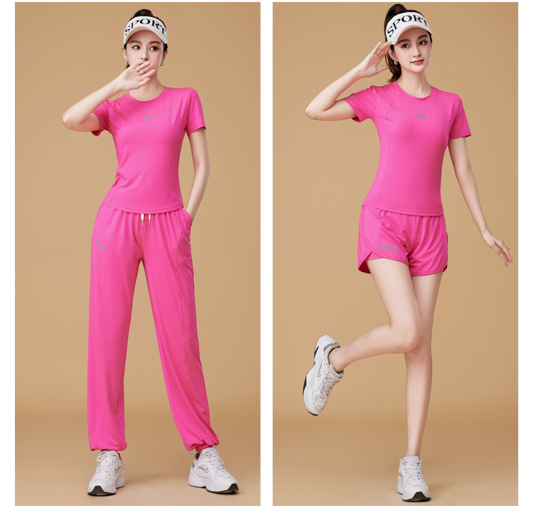 봄과 여름 운동복 피트니스 반팔 티셔츠 최고 빠른 건조 그룹 요가 달리기 캐주얼 스퀘어 댄스 의류 반바지스토어 가기