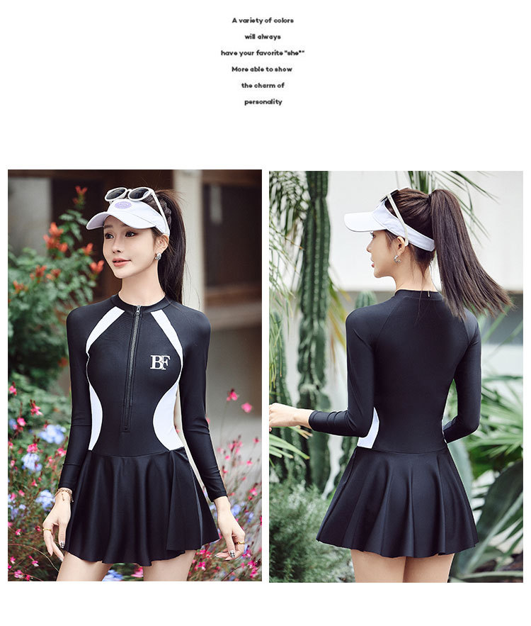 여성용 긴팔 원피스 수영복, 보수적이고 살을 가려주는 슬리밍 수영복, 온천용 고급 스포츠 수영복 도매 2026스토어 가기