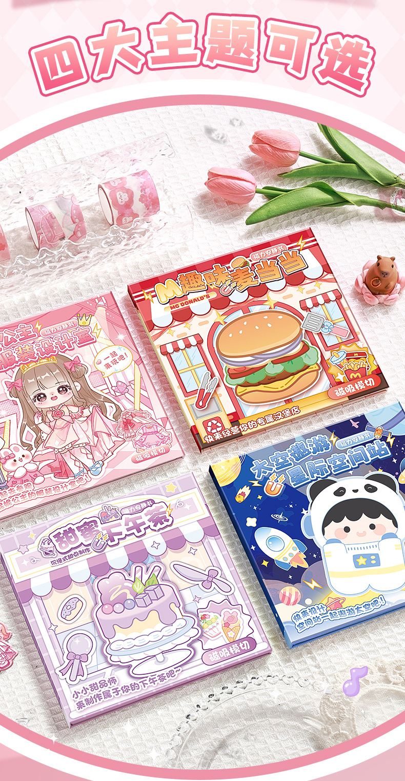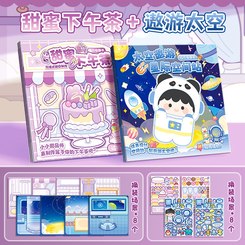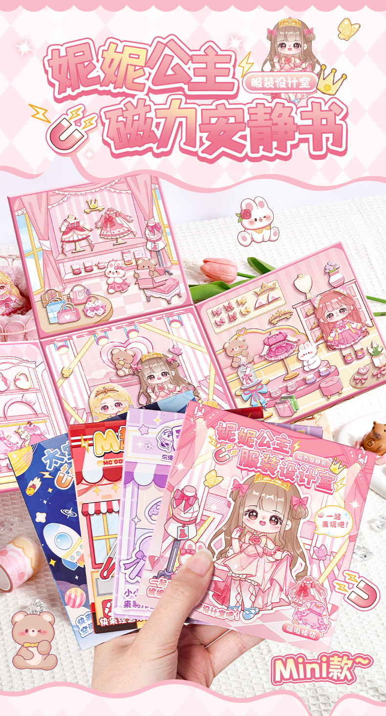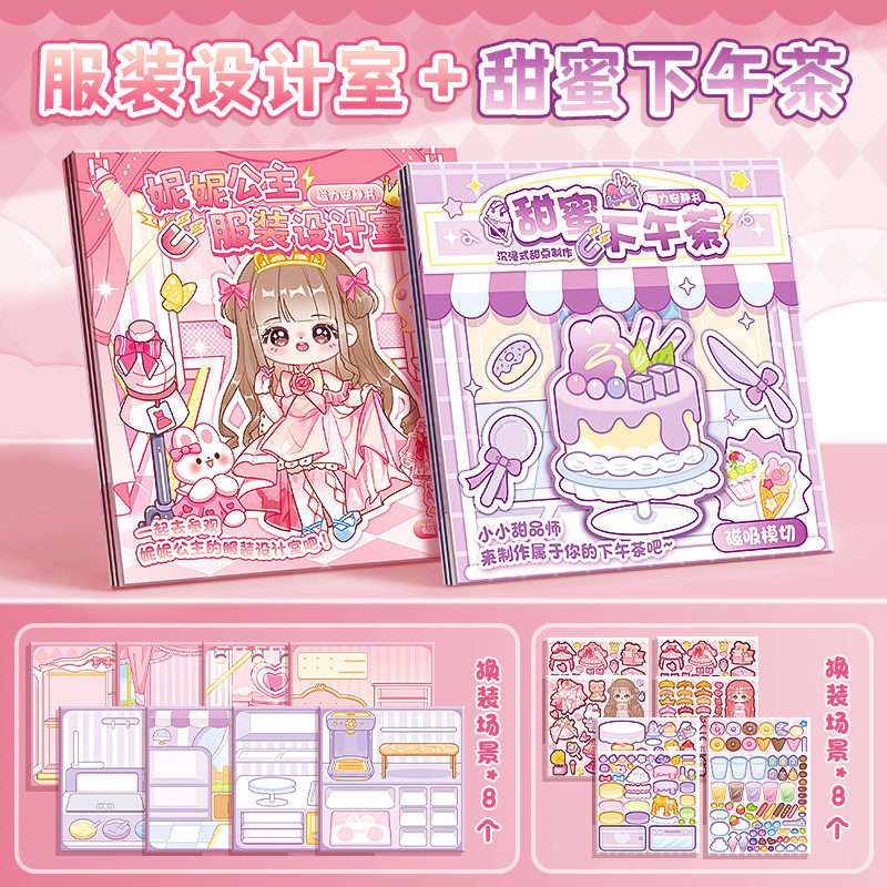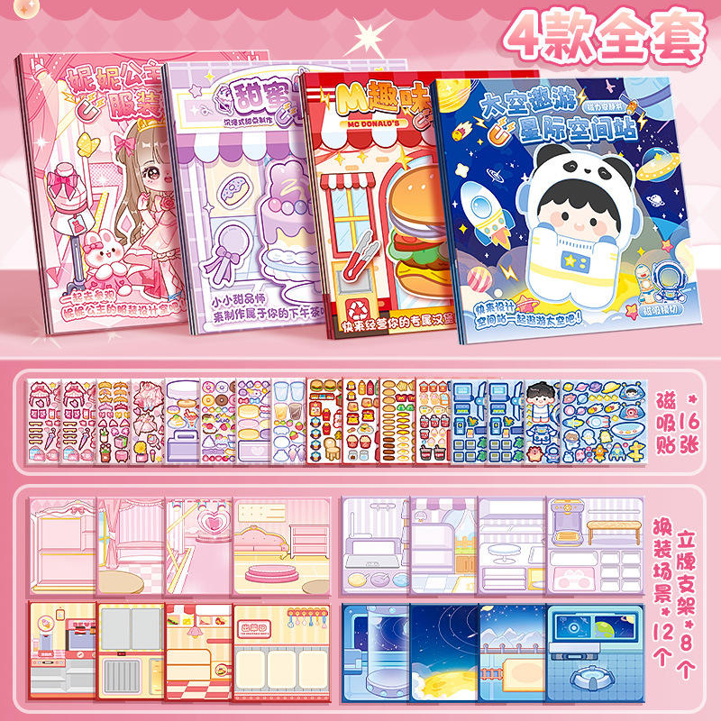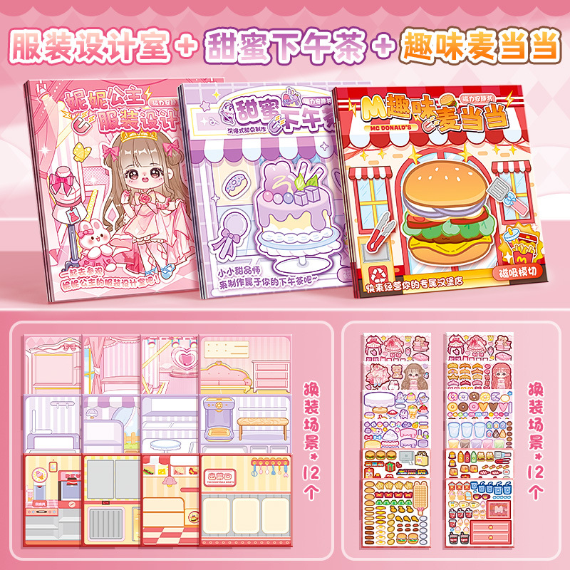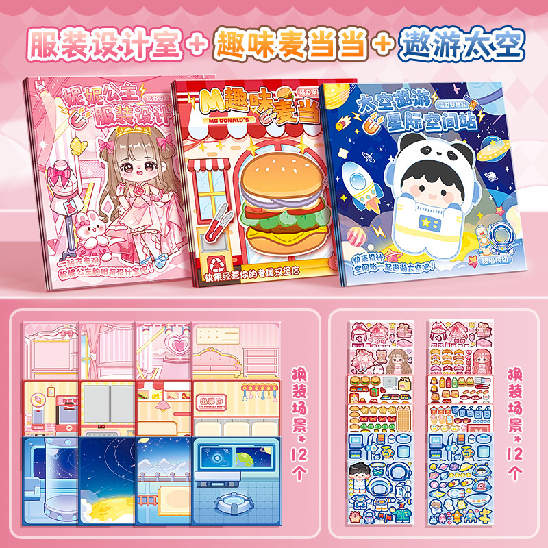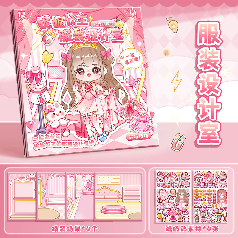 어린이 자기 조용한 책 공주 장면 원피스 스티커 책 만화 수제 DIY 스티커 교육 장난감스토어 가기