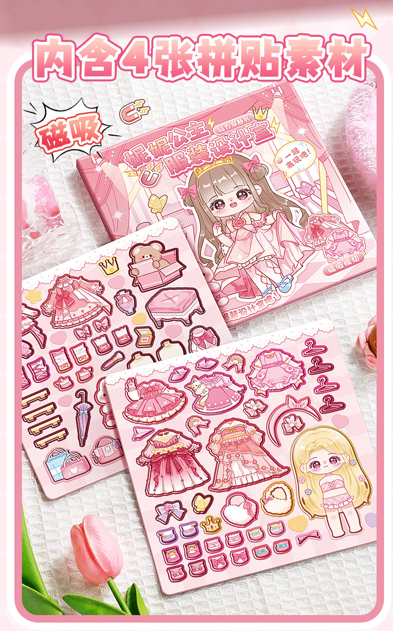 어린이 자기 조용한 책 공주 장면 원피스 스티커 책 만화 수제 DIY 스티커 교육 장난감