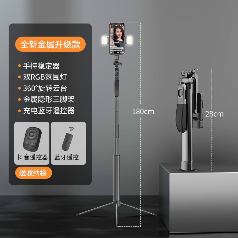 A21S 휴대 전화 브래킷 블루투스 셀카 스틱 안정기 휴대용 짐벌 RGB 분위기 채우기 빛 라이브 삼각대스토어 가기