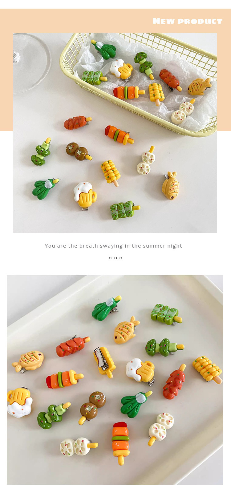 어린이 창조적 인 시뮬레이션 바베큐 헤어핀 소녀 미니 작은 머리핀 어린 소녀 2024 새로운 헤드웨어 헤어 액세서리