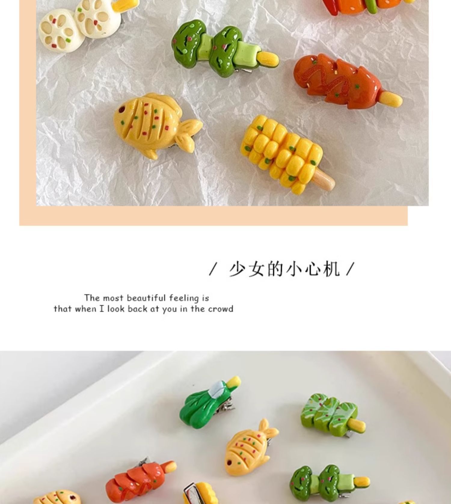 어린이 창조적 인 시뮬레이션 바베큐 헤어핀 소녀 미니 작은 머리핀 어린 소녀 2024 새로운 헤드웨어 헤어 액세서리스토어 가기