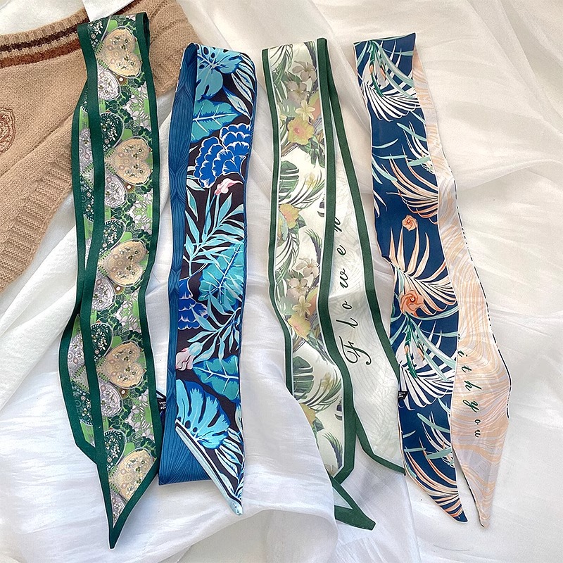 스카프 여자 여름 여행 모든 경기 Ins 리본 포니 묶인 머리 스트랩 좁은 긴 넥타이 다기능 작은 실크 스카프스토어 가기