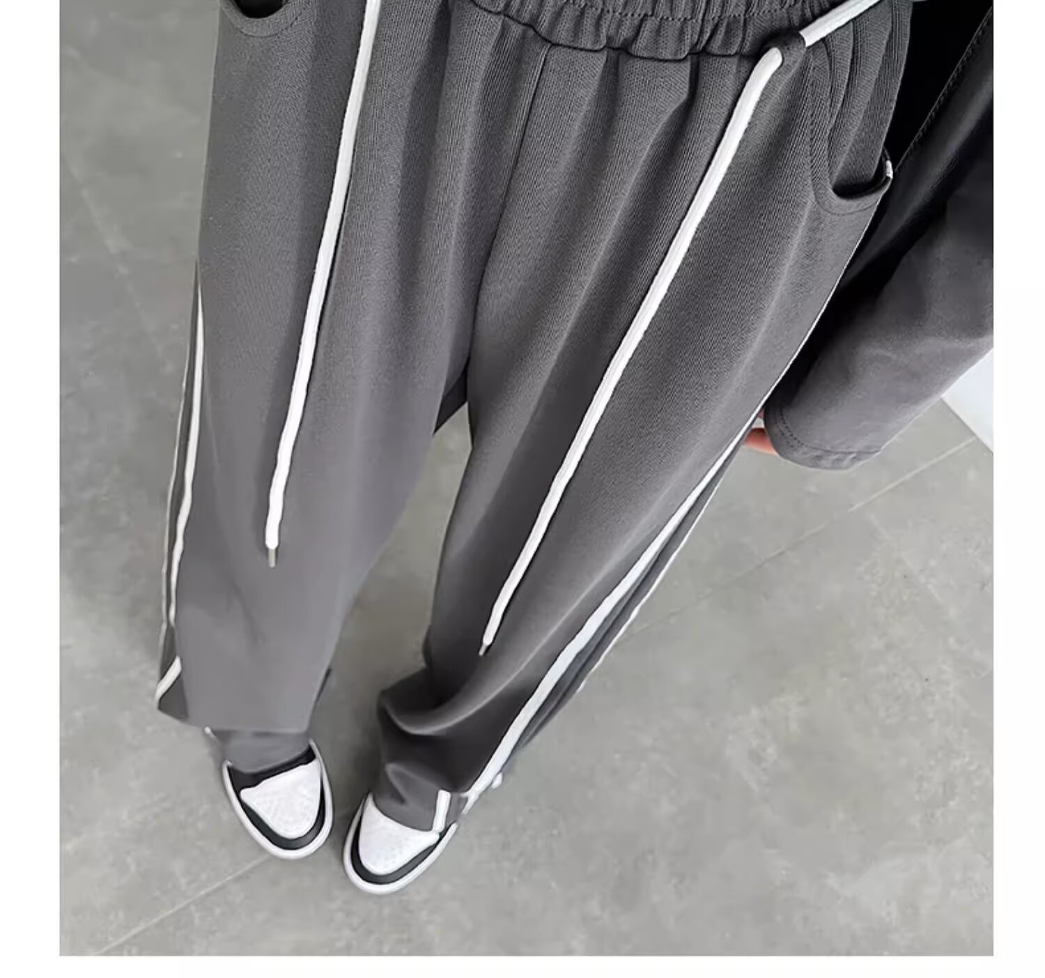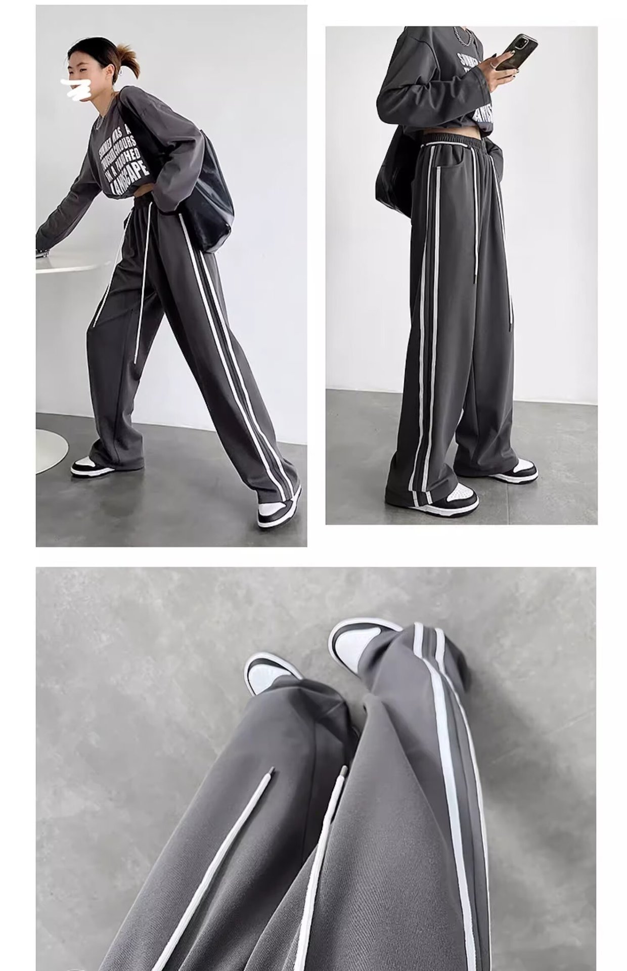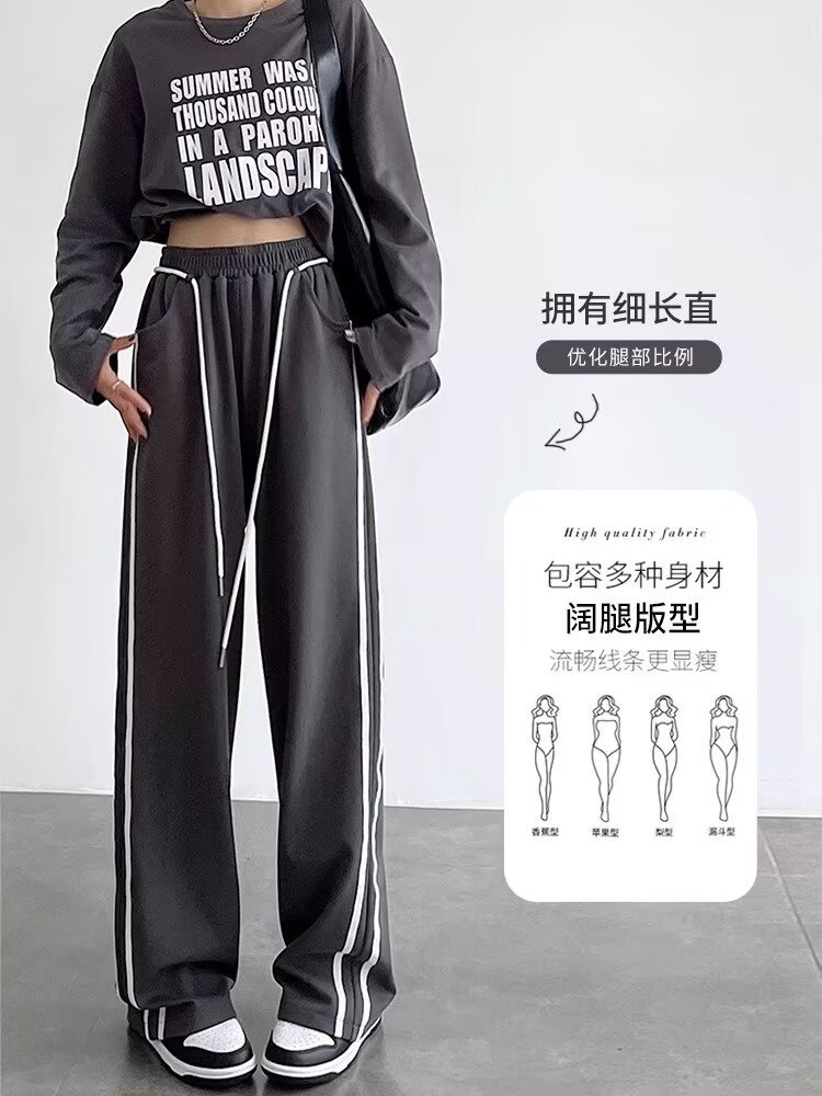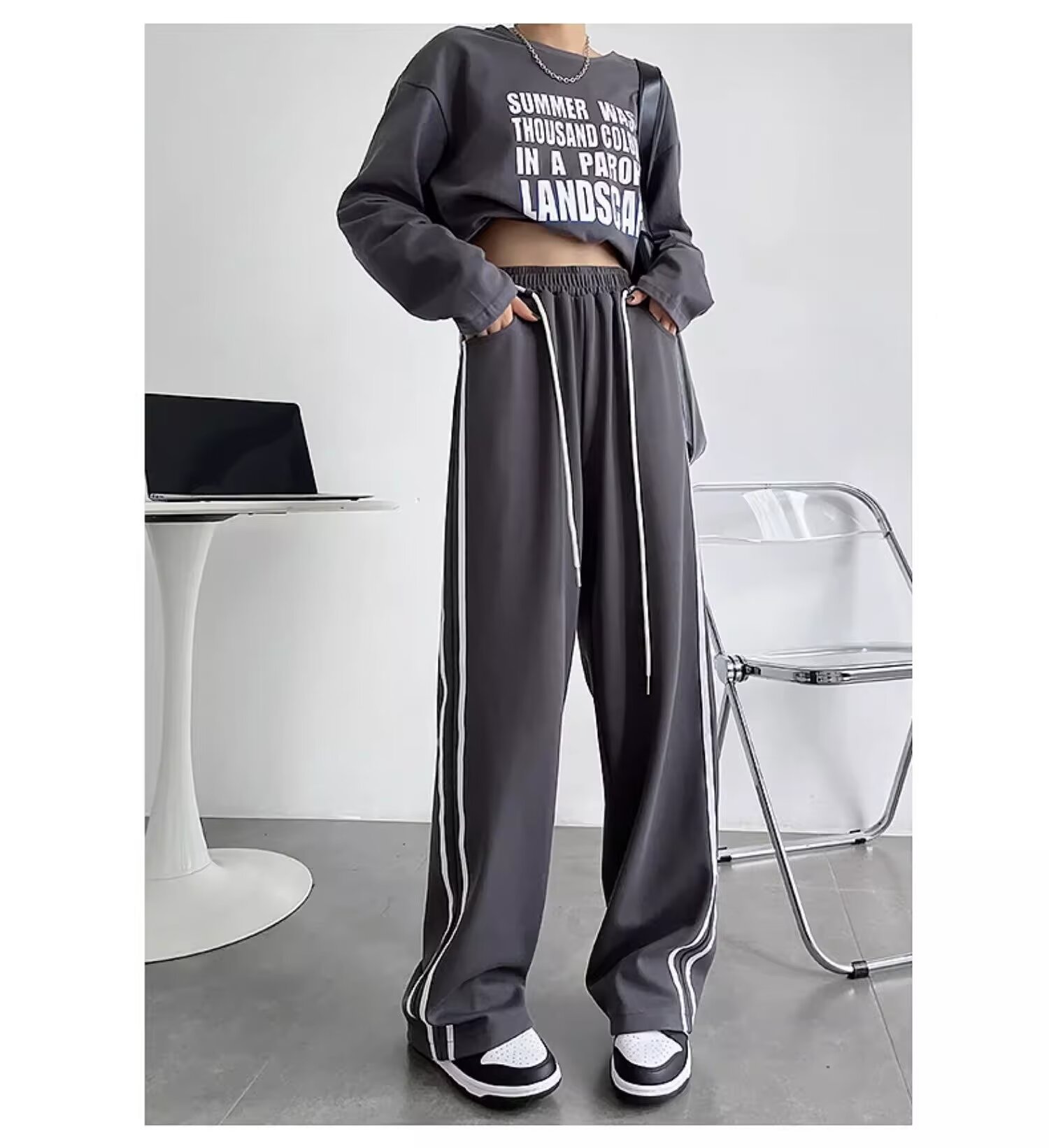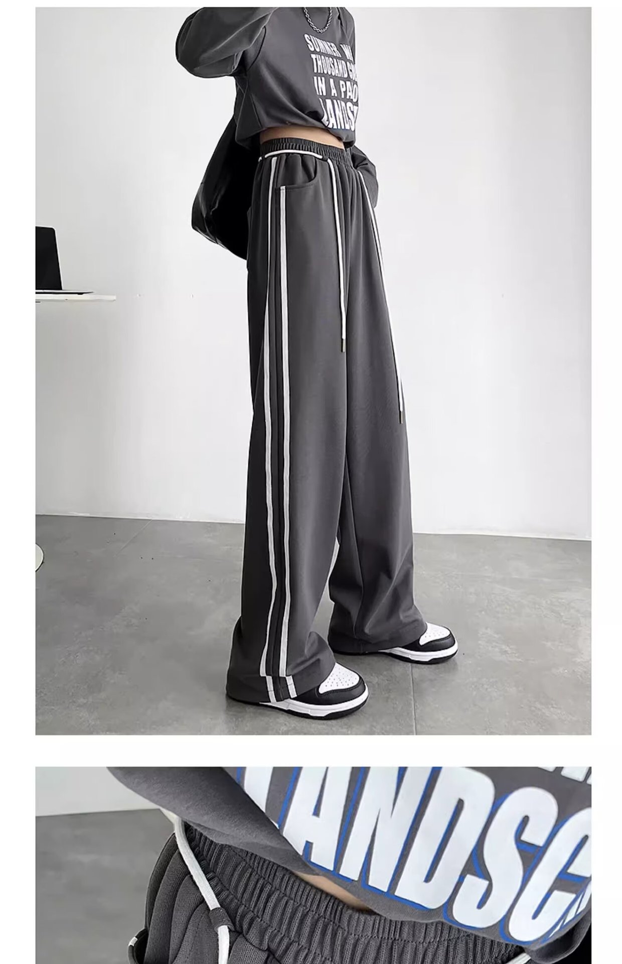 하이 스트리트 스트레이트 캐주얼 바지 남자 봄과 여름 느슨한 얇은 스포츠 다리 러셔 바지 여자 줄무늬 빠른 건조 바지