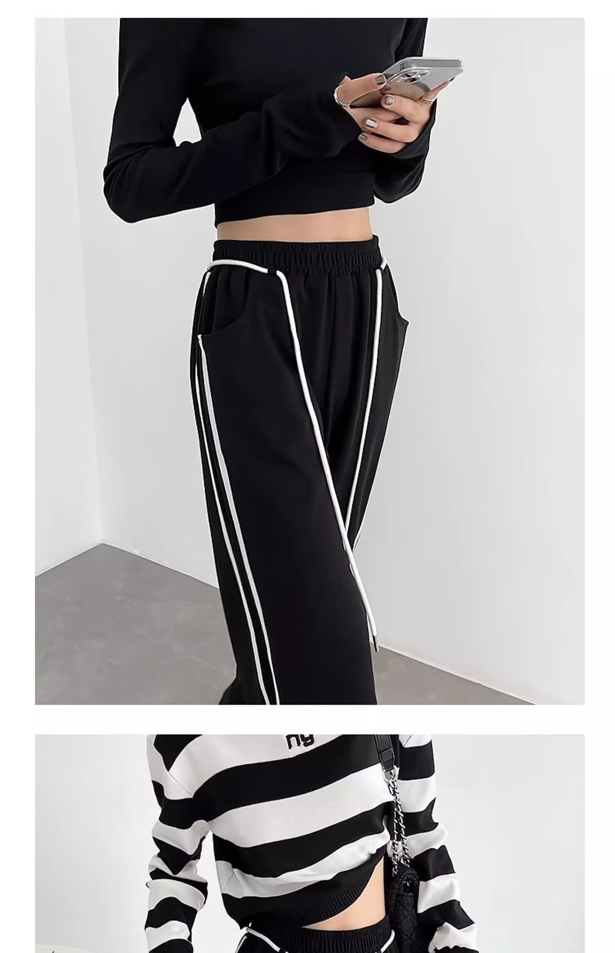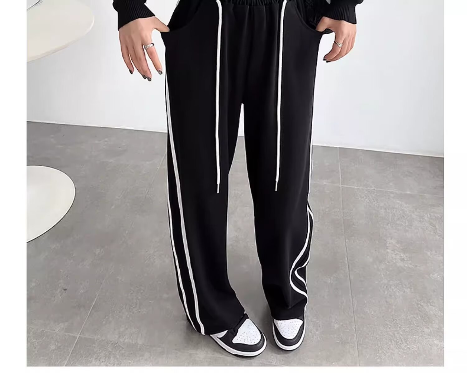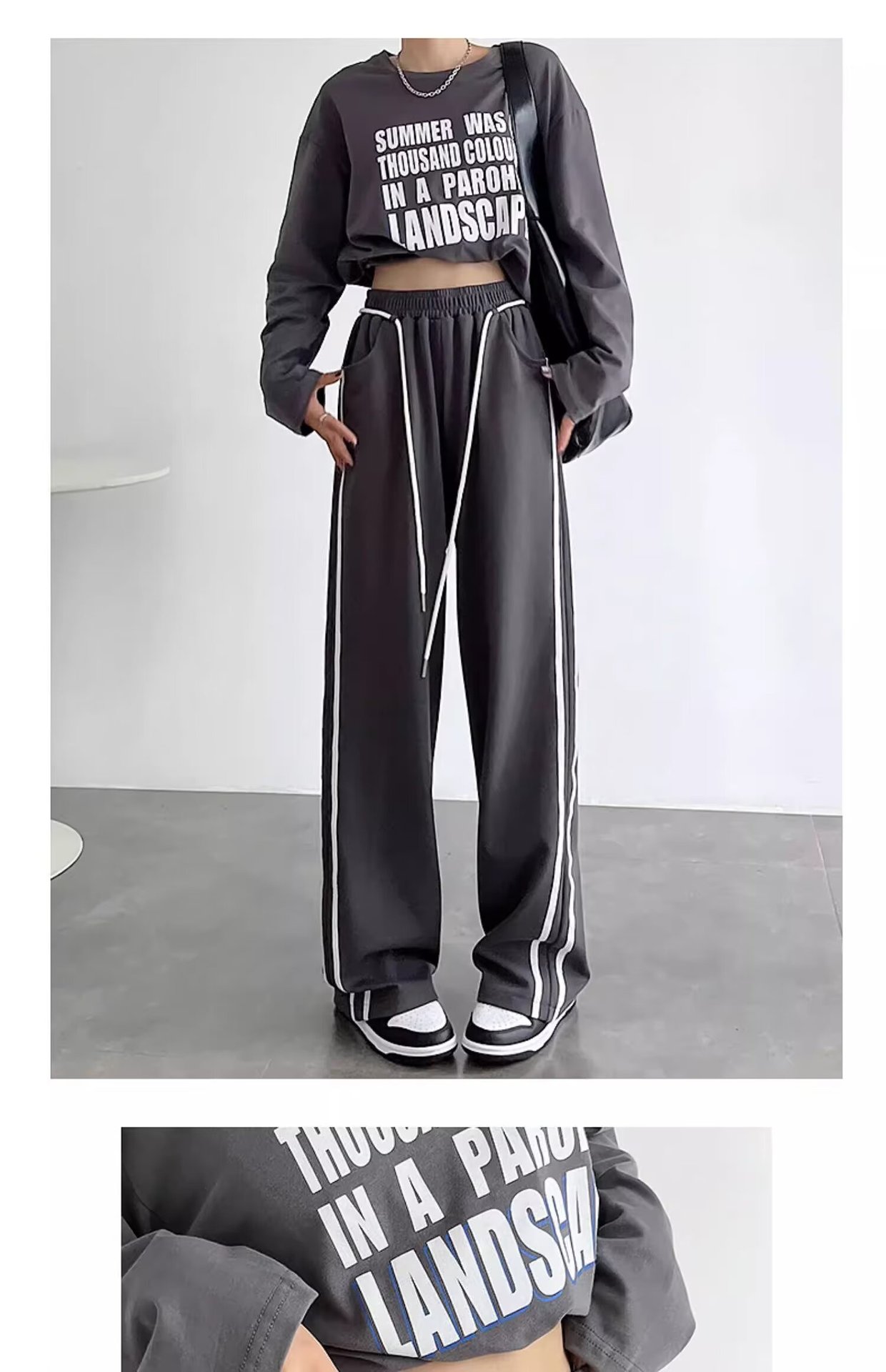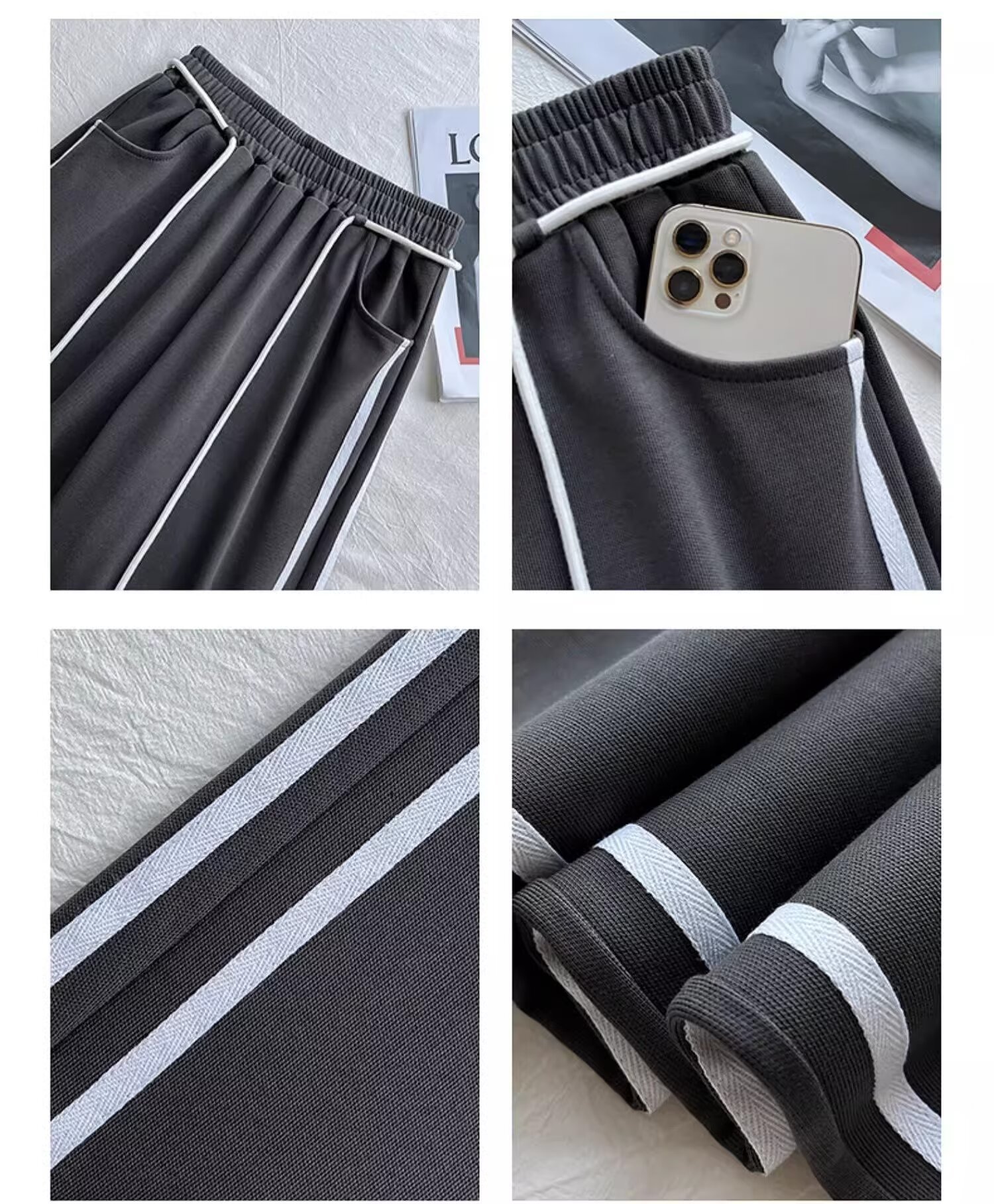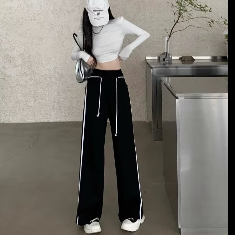 하이 스트리트 스트레이트 캐주얼 바지 남자 봄과 여름 느슨한 얇은 스포츠 다리 러셔 바지 여자 줄무늬 빠른 건조 바지