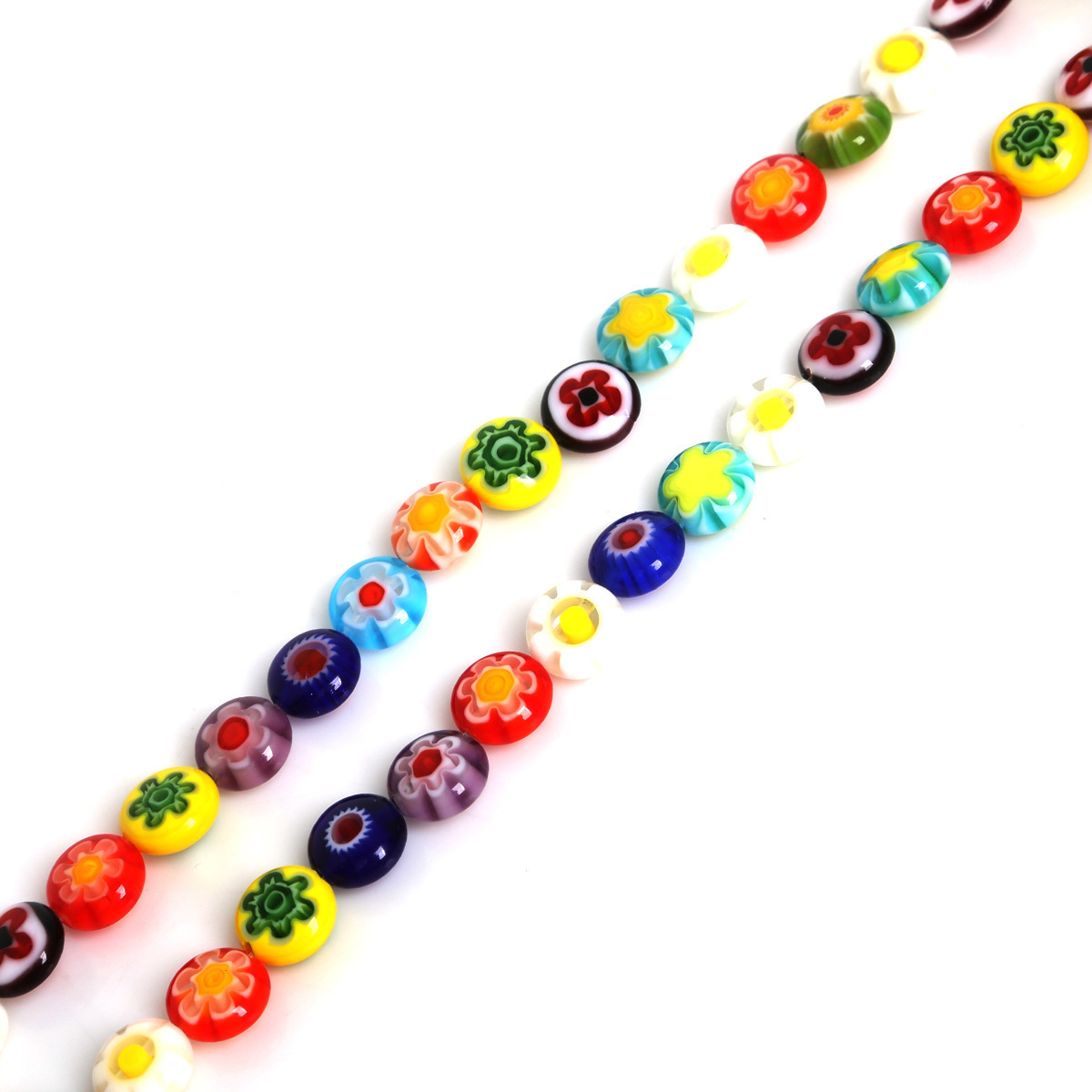 플랫 라운드 천 꽃 유리 구슬 디스크 구슬 수제 DIY 목걸이 팔찌 귀걸이 액세서리 공장 직접 판매