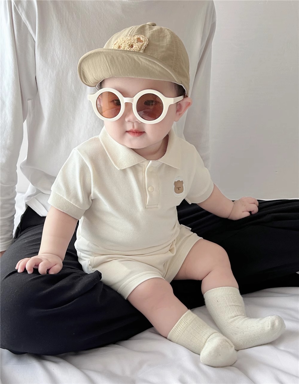 소년의 여름 대학 스타일 세트 아기의 반팔 폴로 셔츠 통기성 아기의 얇은 최고 반바지 캐주얼 착용