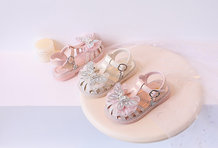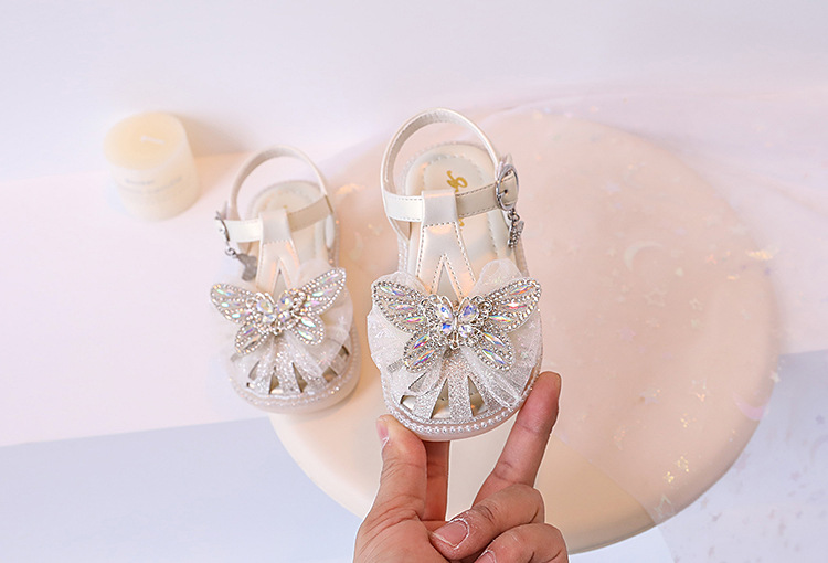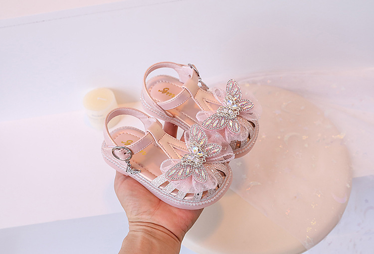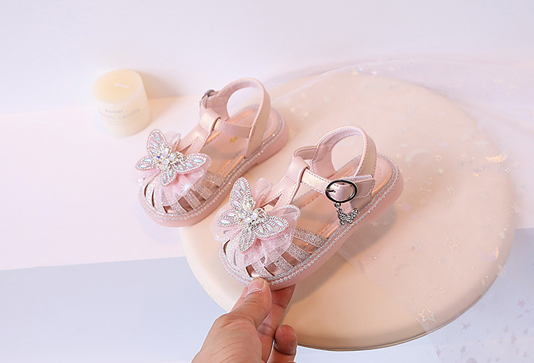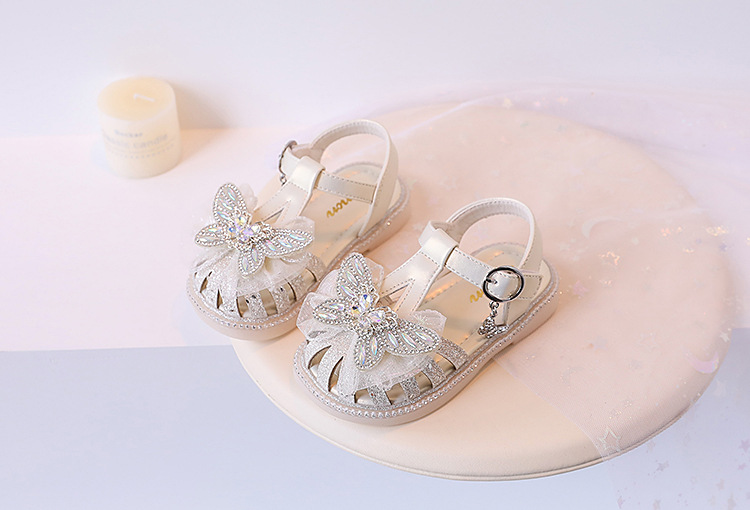 여자 서양식 샌들 2024 여름 새로운 어린이 신발 공주 스타일 부드러운 바닥 폭발 여자 크리스탈 빛나는 신발스토어 가기