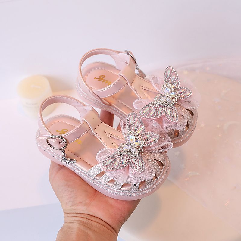 여자 서양식 샌들 2024 여름 새로운 어린이 신발 공주 스타일 부드러운 바닥 폭발 여자 크리스탈 빛나는 신발