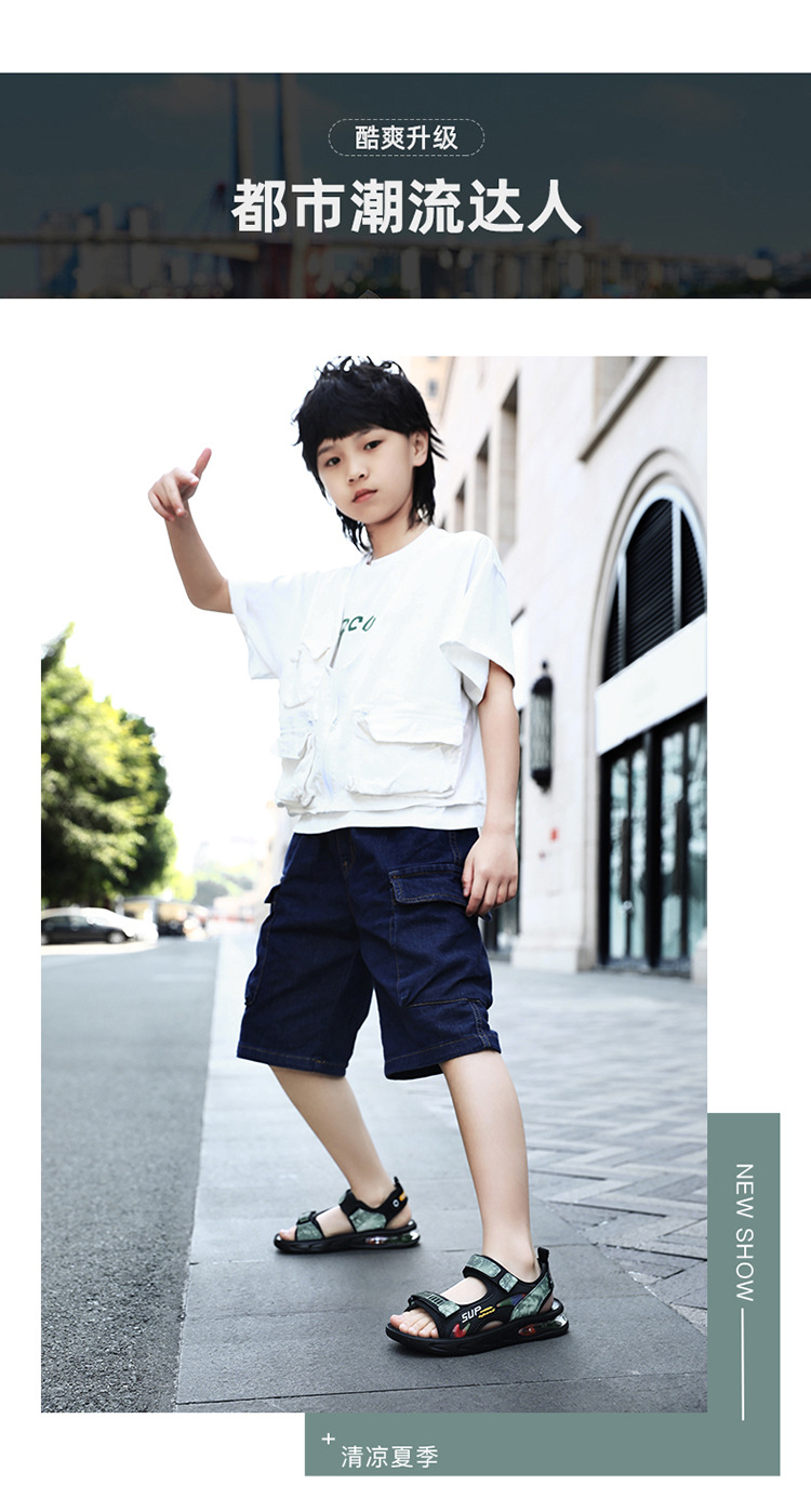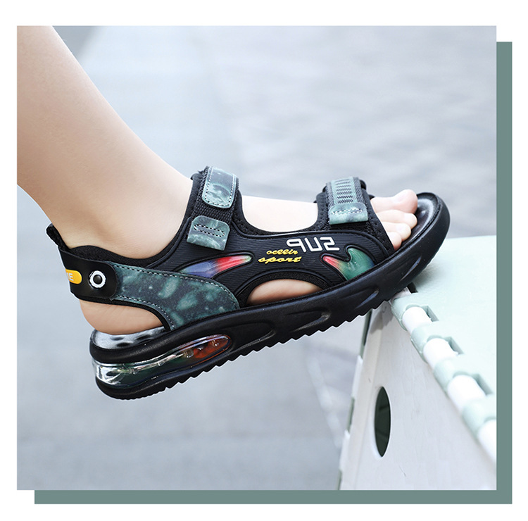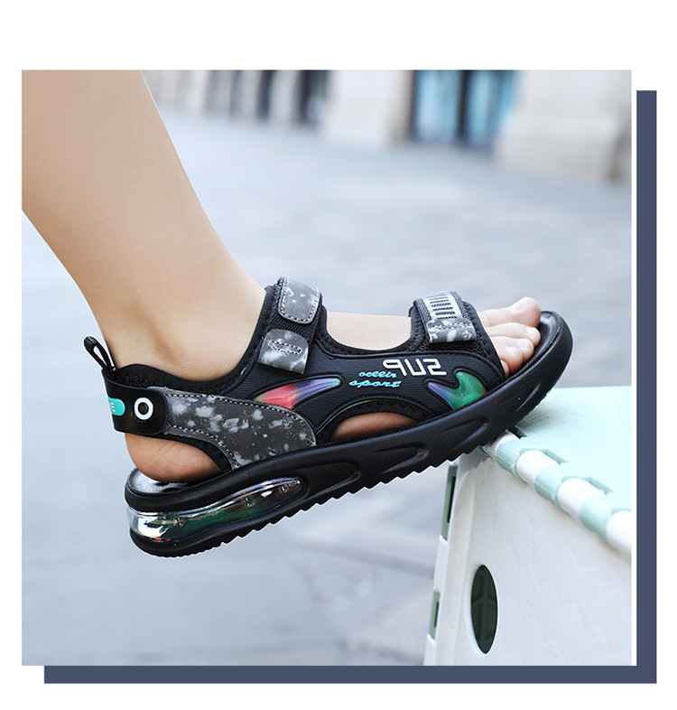 소년 샌들 2024 새로운 여름 어린이 신발 소프트 단독 어린이 비치 신발 미드 빅 어린이 스포츠 에어 쿠션 샌들 트렌디스토어 가기